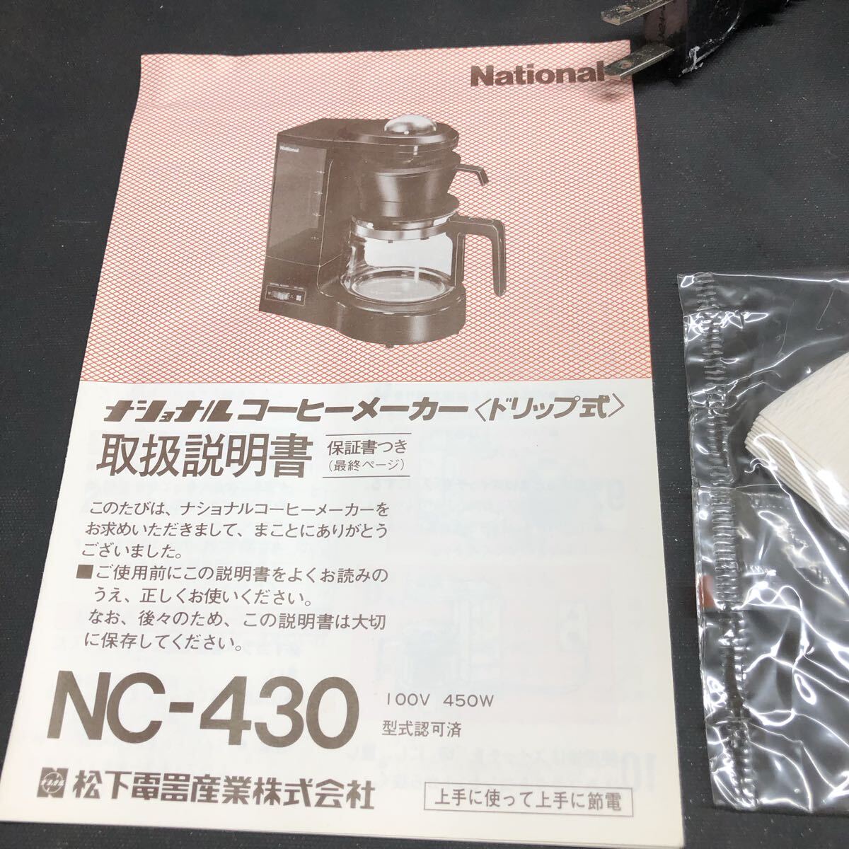 National ナショナル NC-430 コーヒーメーカー ドリップ式 キャリオカ  説明書 箱  通電可能 現状品