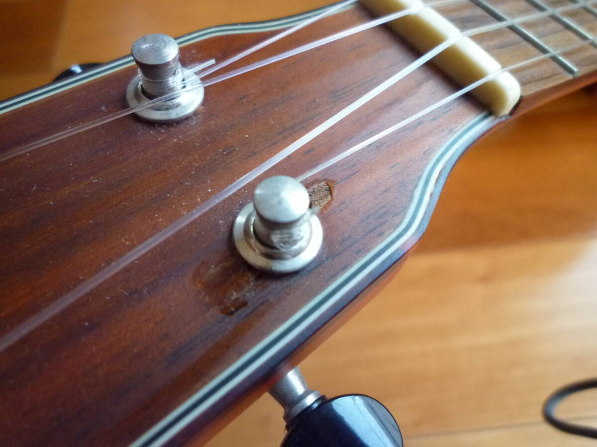 ●オリジナルペグでの調弦が難しく、素人作業ですがグローバ9NBペグに取り替えました。その際、ヘッド表側取り付け部ニス部分が割れてしまいました(画像を参照)のでご注意ください。本体その他の部分は気になる傷はないようです。