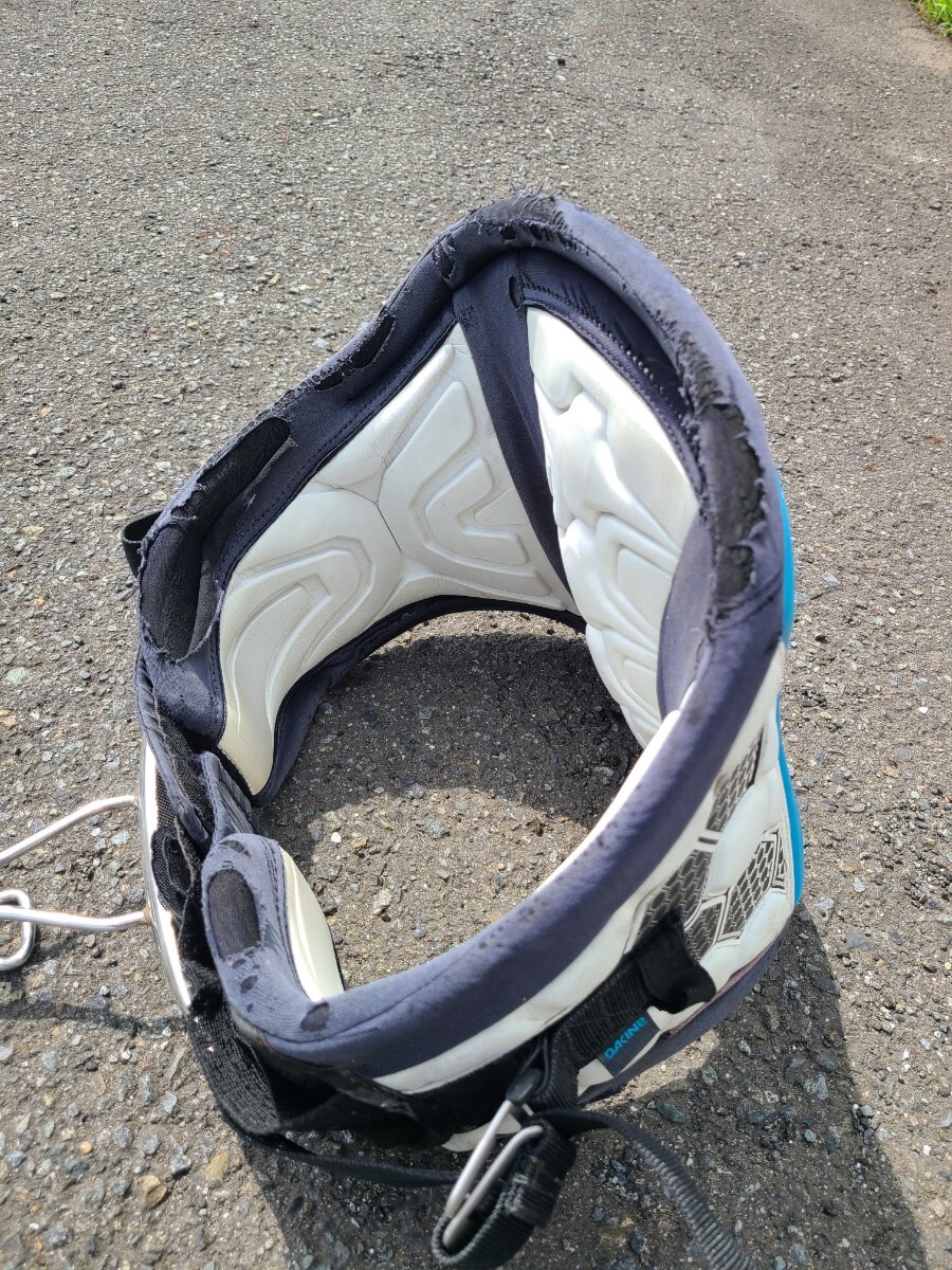まだまだ普通に使用可能ですが、ダカイン特有のハーネス上部と下部の柔らかい素材の部分が、劣化しています。
