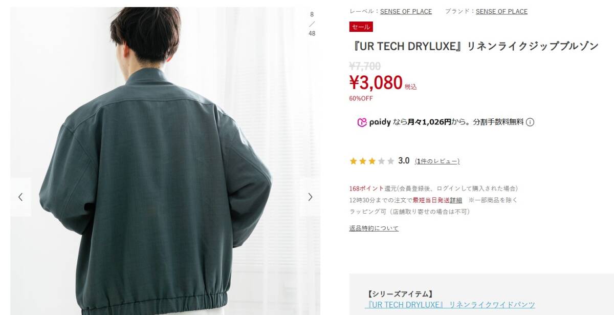 検索窓に右記を入力→『UR TECH DRYLUXE』リネンライクジップブルゾン