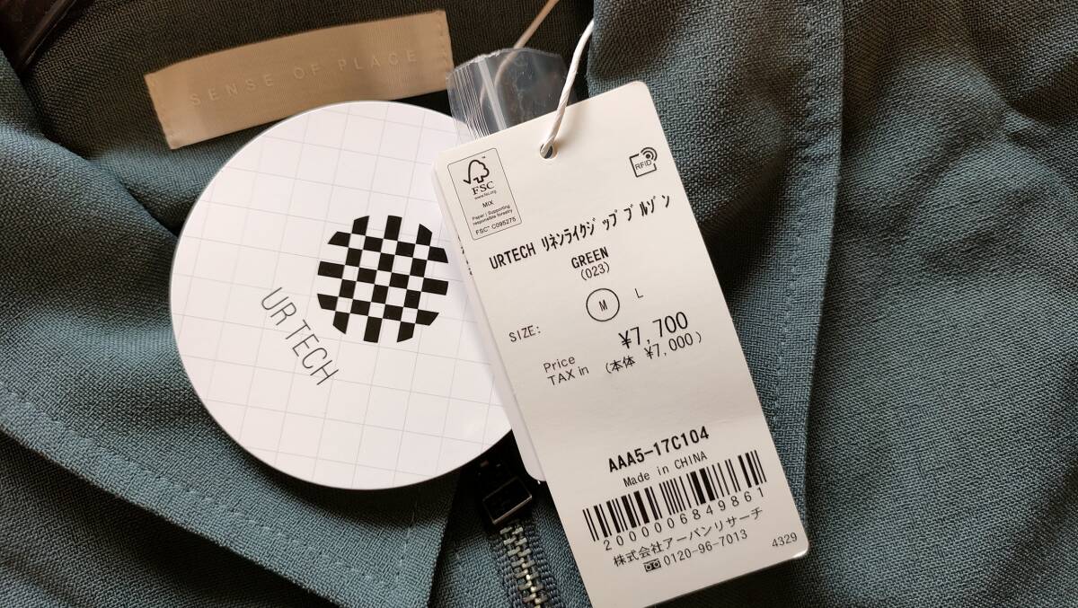 【M】リネンライクジップブルゾン UR TECH DRYLUXE/SENSE OF PLACE MEN 緑グリーン AAA5-14C119 2025年春 アーバンリサーチ