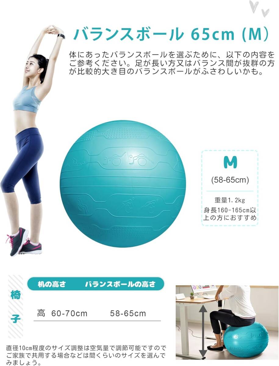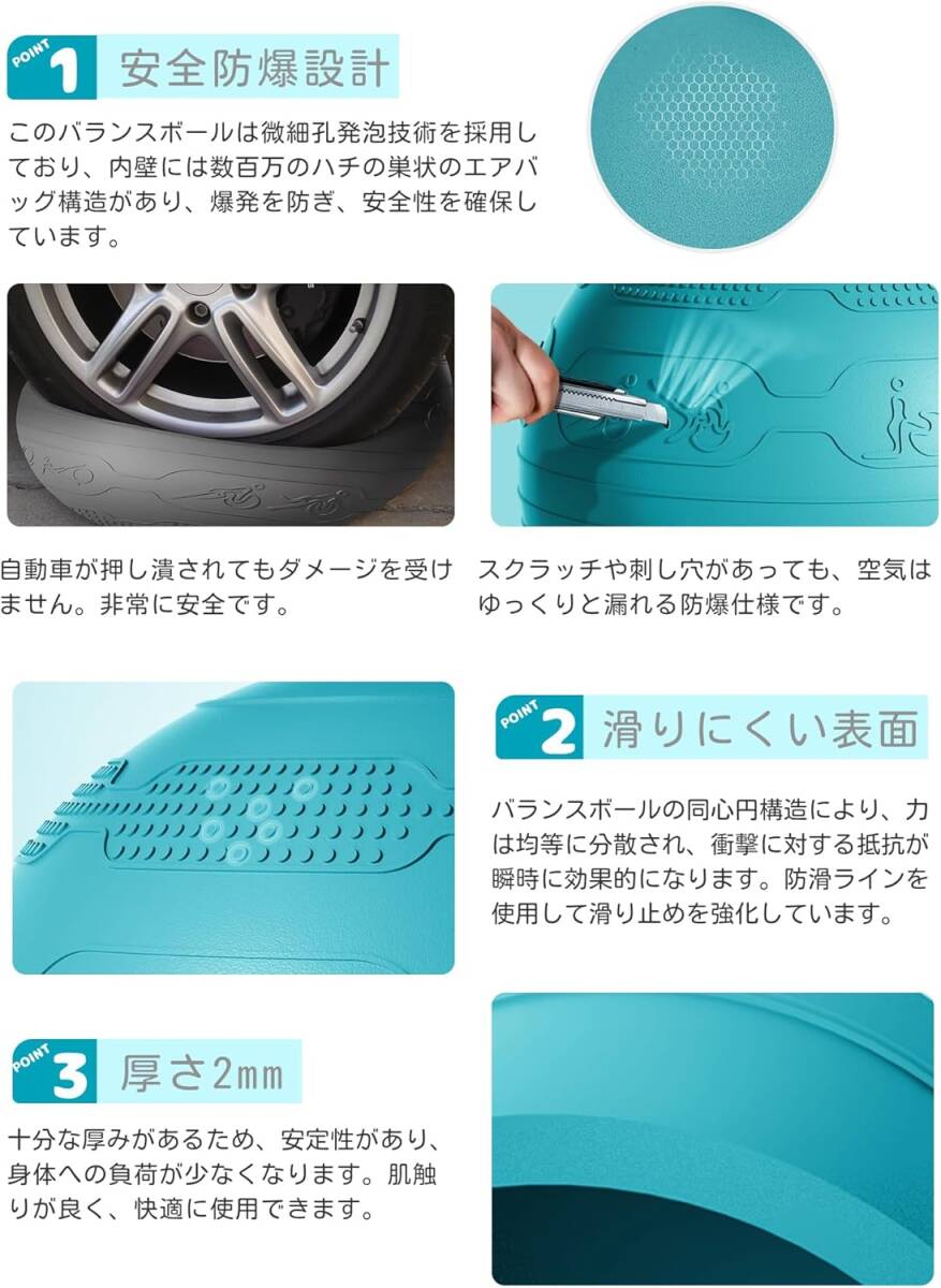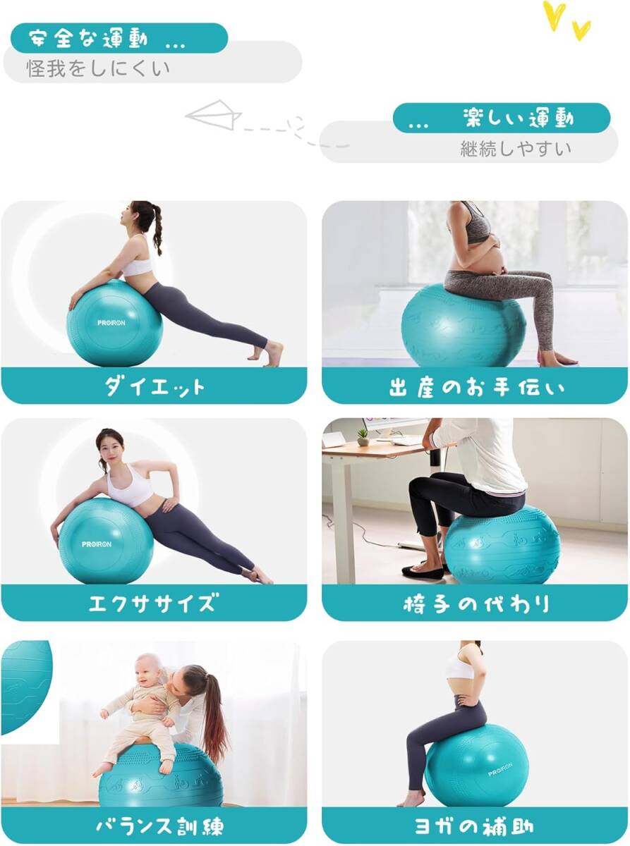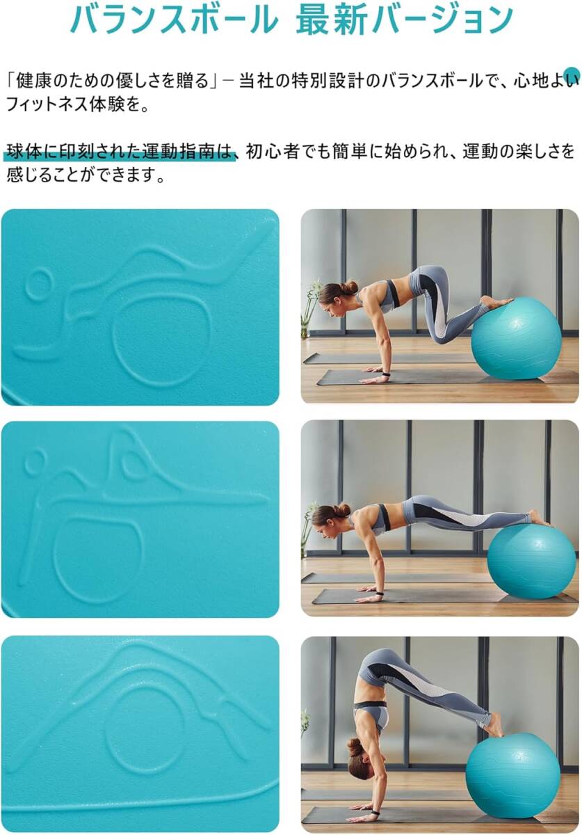 ターコイズグリーン色 耐荷重300KG PROIRON バランスボール 65cm ばらんすぼーる トレーニングガイドパターン付き 厚い ジムボール