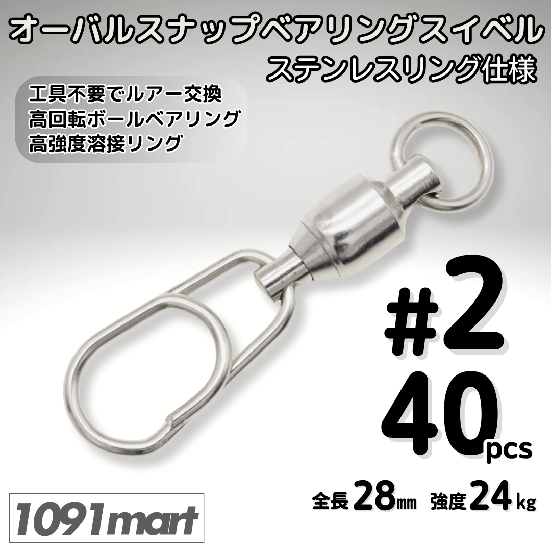 オーバルスナップベアリングスイベル #2 40個セット ステンレス製溶接リング ジギング 青物 オーシャンスナップタイプ【1091mart】