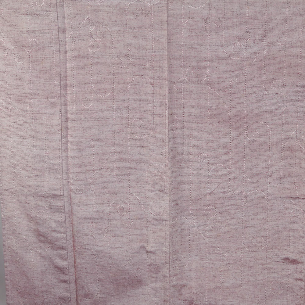| 商品説明 | 牡丹鼠・梅鼠色系の交ぜ織り地に抽象化された唐草模様が織られた単衣の紬です。 |