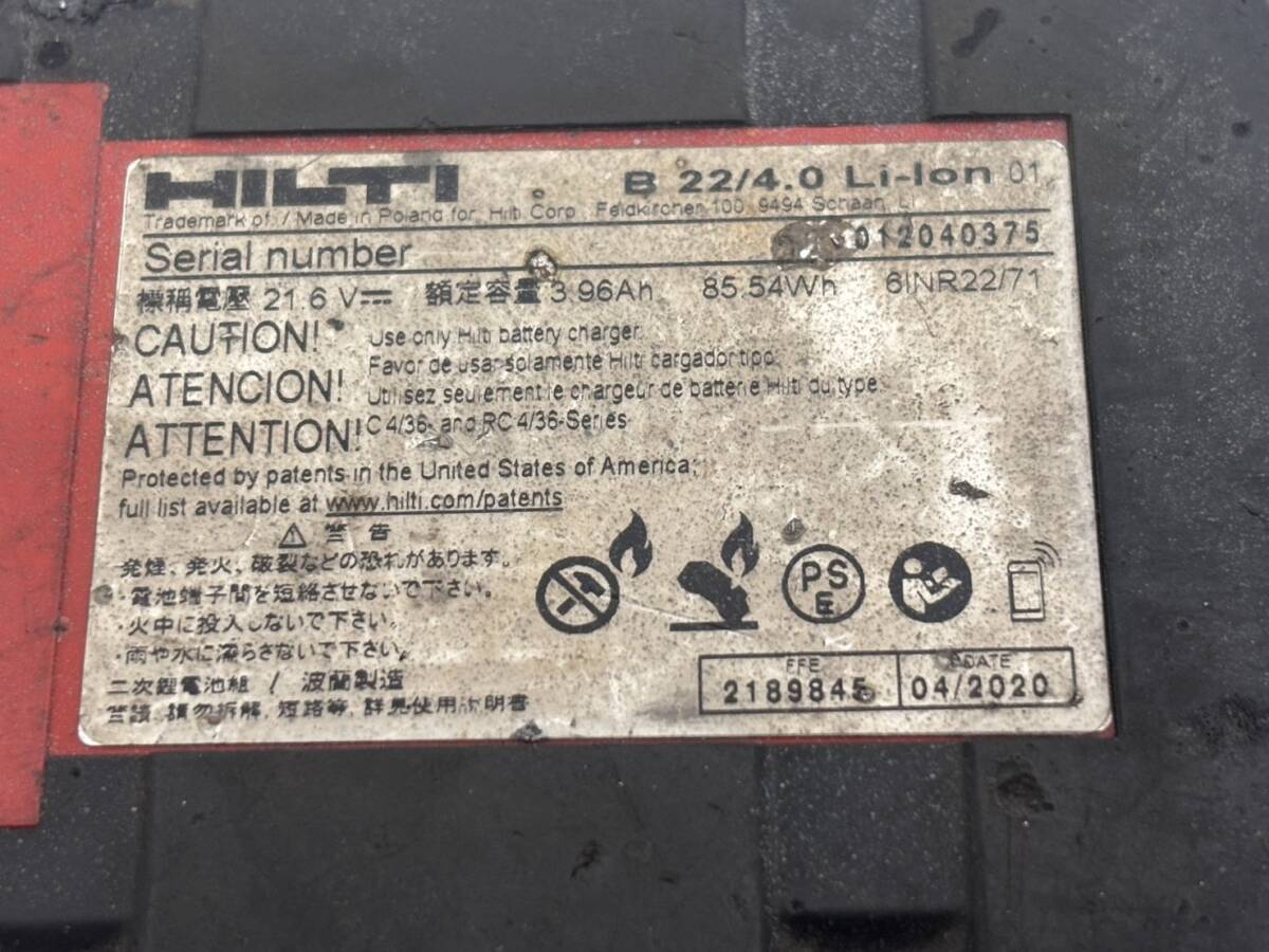 送料無料h9183 HILTI ヒルティ リチウムイオン バッテリー B22/4.0 充電バッテリー 中古品となります。 動作確認済みです。 画像が全てとなります。 新品未使用品ではごさいませんので、画像では分かりにくい小傷 スレ等がある場合があります。 中古品に付きトラブル防止の為 神経質な方や完璧を求める方は御遠慮下さいますよう御願い申し上げます。 |