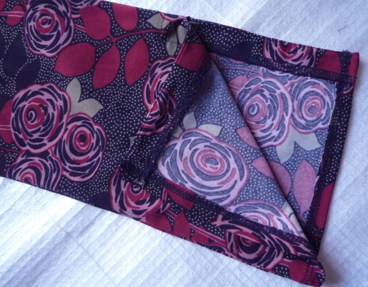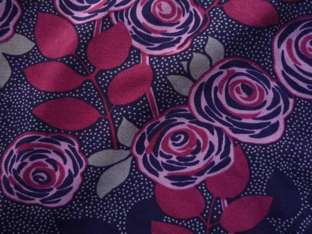 お色は、黒地にベージュの細かいドットと、えんじ・ピンク・くすんだみどりの薔薇柄プリントです。