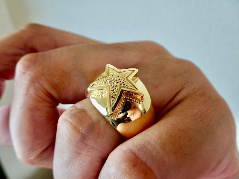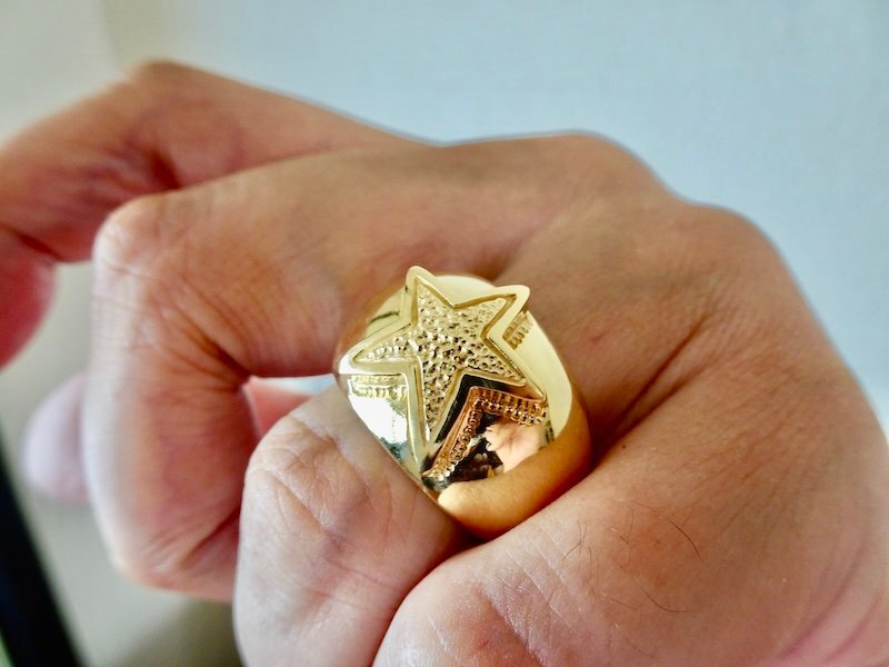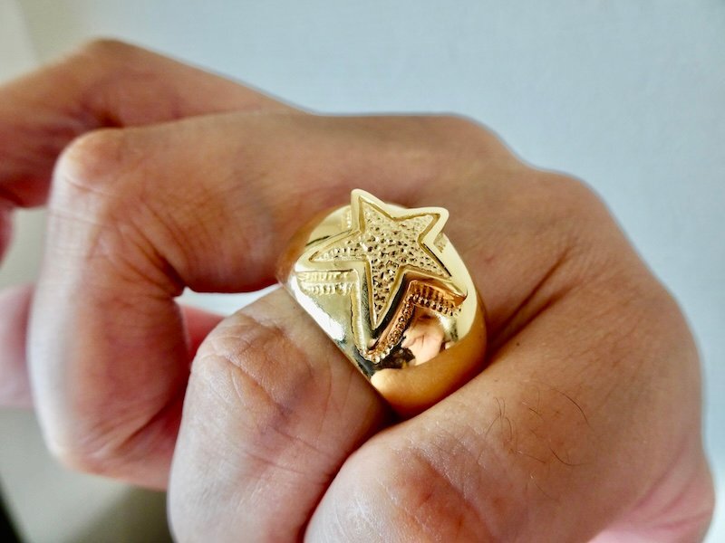 ごらん頂きありがとうございます。 オリジナルブランド 仁尾彫金『k18ゴールド、ギャラクシースター甲丸リング』を出品致します。宇宙をテーマにしたアクセサリーをオリジナルで自ら制作しています。今回、甲丸リングを制作致しました。そこにスターのモチーフを立体的に造形致しました。スター内部には輝く星をイメージした凸凹のテクスチャをいれています。最大幅は約1.5cm、最大厚みは約8mm強です。全てk18の塊で重量も約36gとズシリと、しっかりとした作りになっています。全て金の塊なので変色する事はありません。オリジナリティを追求しデザイン、制作を私自身で行っている為、今回、新品をご用意致します!! *こちらの作品につきまして10号から30号まで制作可能でございますm(_ _)m。 *こちらの作品につきまして制作に3週間程度かかります。m(_ _)m k18イエローゴールド 約36g (k18刻印あり) ご質問等ございましたらお気軽にaerothmith@mac.comへご連絡下さい。m(_ _)m 金プラチナにつきましてはフルオーダー制作も承っていますので、ご質問等ございましたらお気軽にaerothmith@mac.comへご連絡下さい。m(_ _)m その他も出品していますのでご覧下さい。m(_ _)m *インスタにて仁尾彫金で制作状況を掲載していますのでお気軽にご登録をお願い致します。(^-^) |