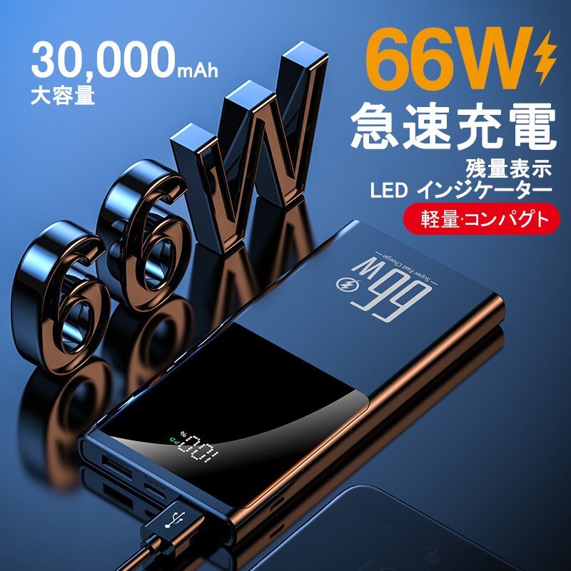 薄型 急速充電 大容量30000mAh スマホ充電 モバイルバッテリー PSE認証 iPhone iPad Android PD3.0 USB Cポート デュアル QC 4.0 USBA