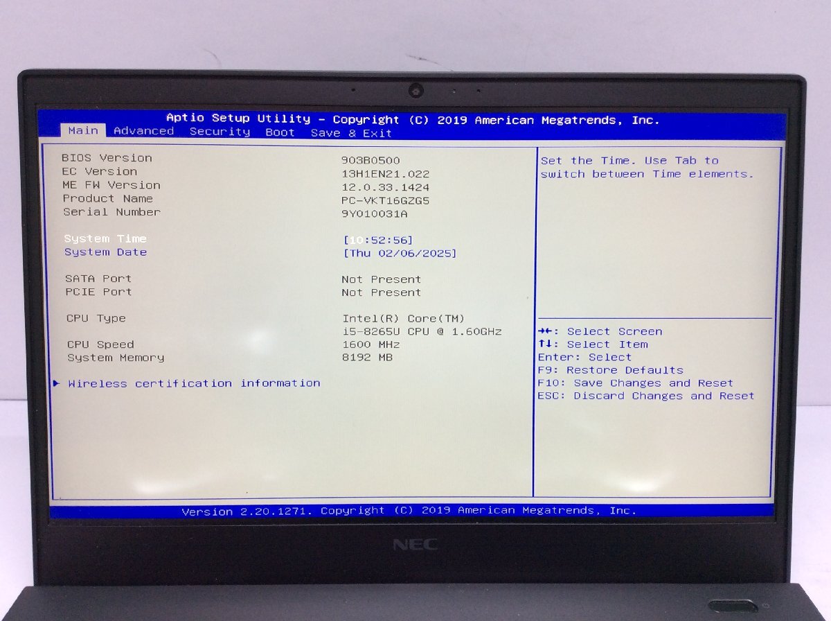 ジャンク/ NEC PC-VKT16GZG5 Intel Core i5-8265U メモリ8.19GB ストレージ無し 【K08244】