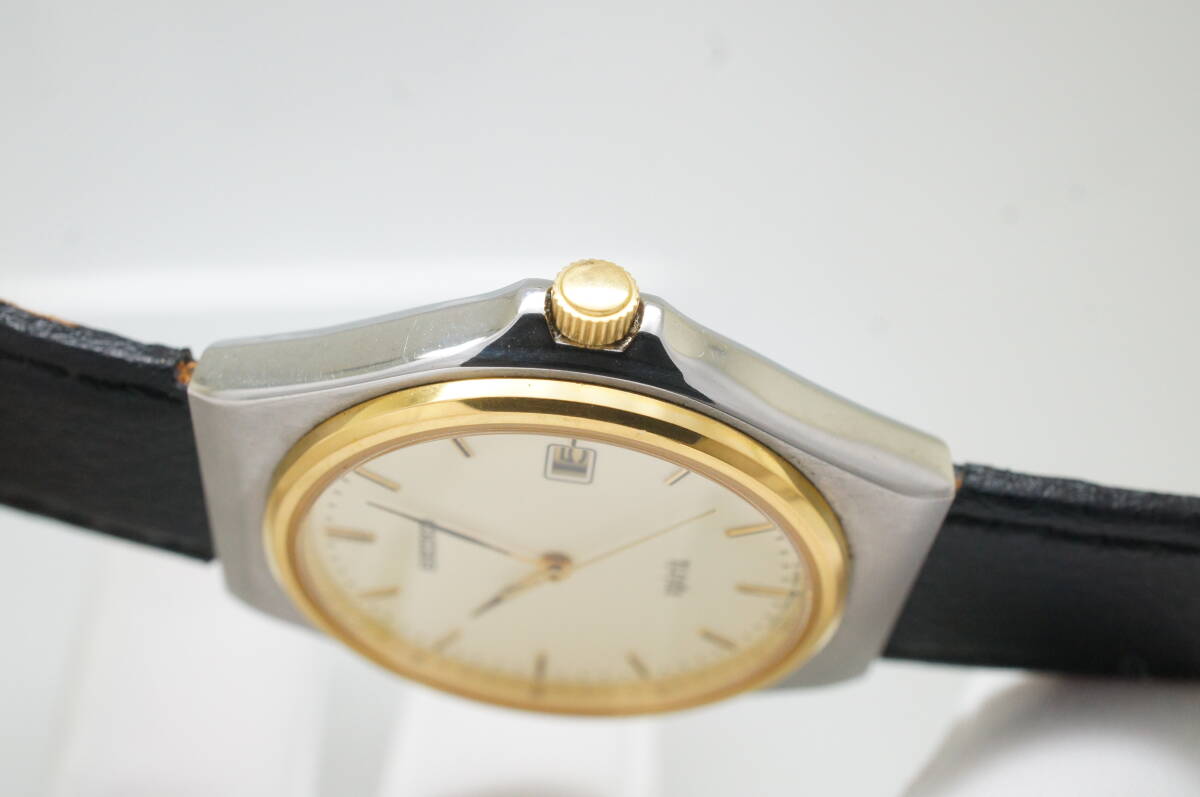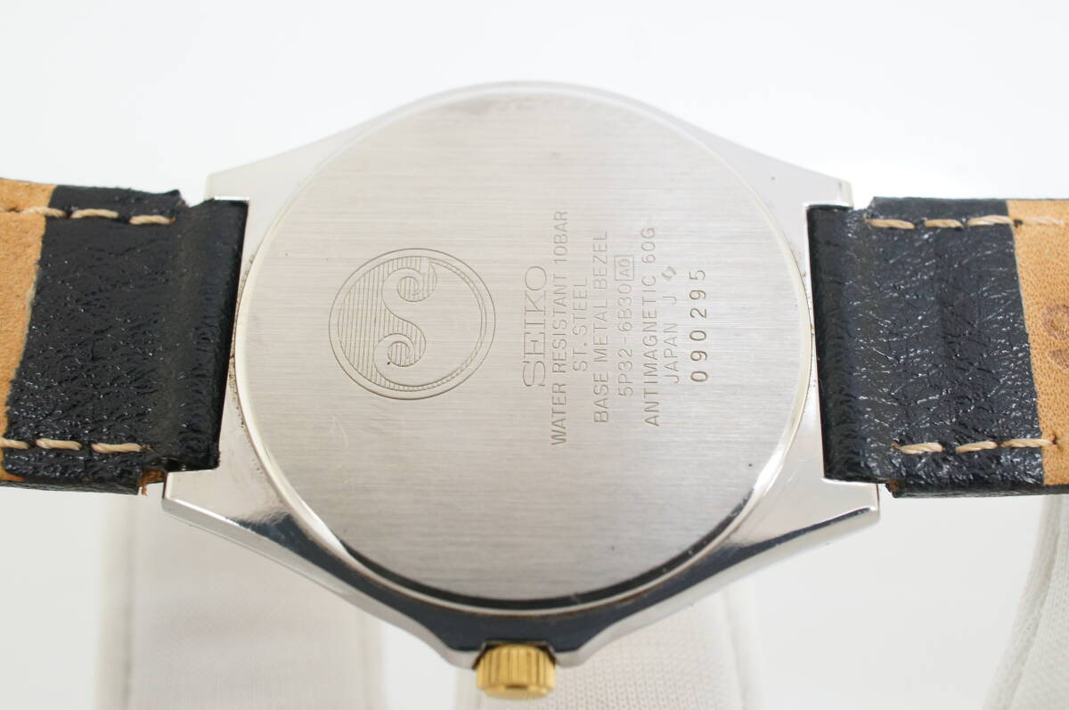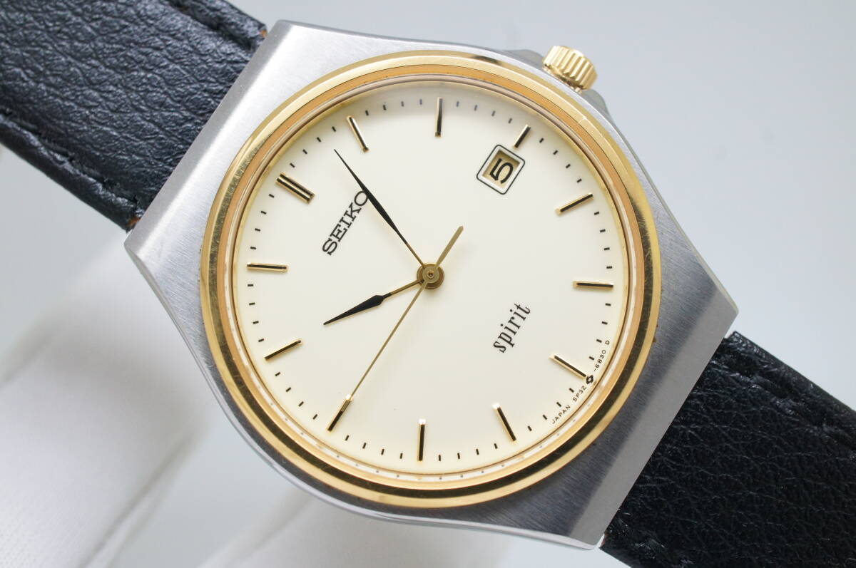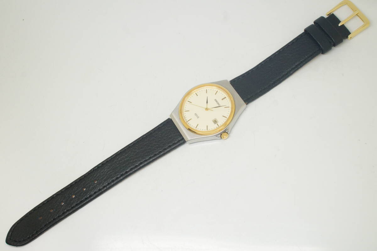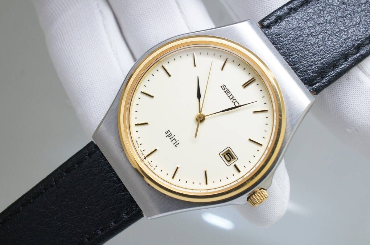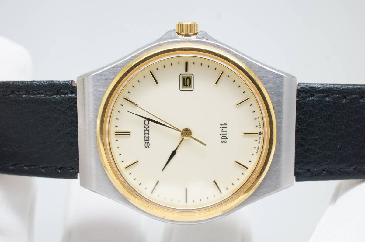 J52●作動良好 美品 SEIKO セイコー SPIRIT スピリット 5P32-6B30 アイボリー文字盤 デイト メンズ腕時計 コンビ お洒落 クォーツ