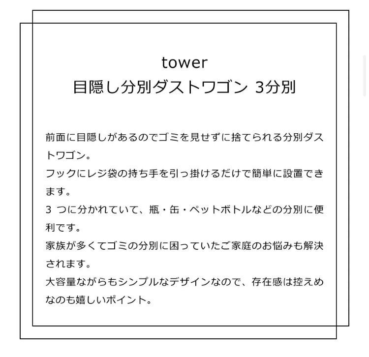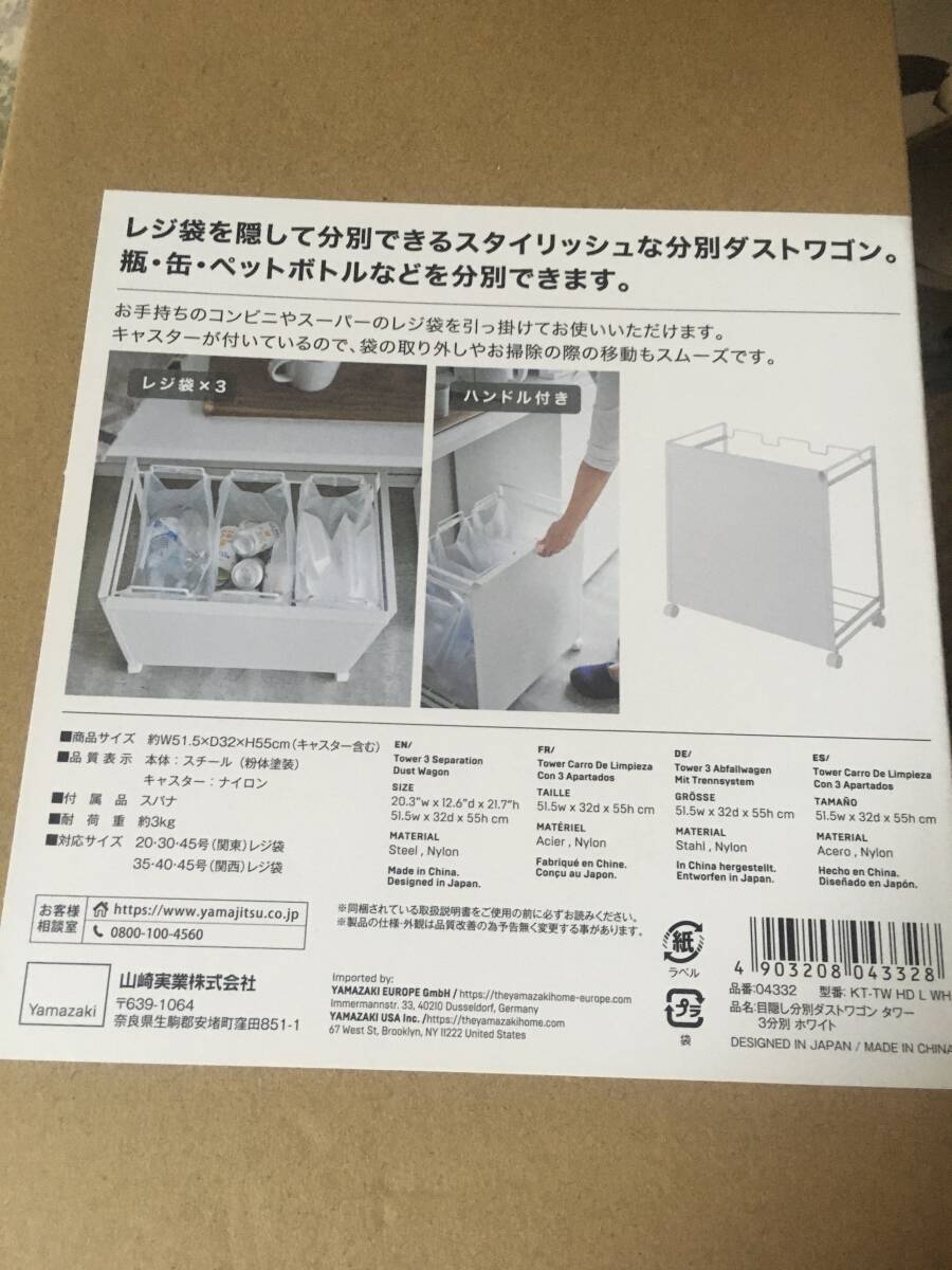 山崎実業 目隠し分別ダストワゴン タワー 3分別 ホワイト
