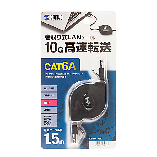 ※配送の送り主はサンワサプライ(株)と記載されています。沖縄・離島配送不可となります。 当店は正規販売代理店です。 特長 ケーブルを自動巻き取り収納でき、コンパクトで携帯に便利です。 10ギガビットイーサネットに対応した、カテゴリ6Aフラットケーブルを採用しています。 ツメ折れ防止カバー付きの両端RJ-45スリムコネクタです。 気をつけておりますが、タイミングによっては在庫切れの場合があります。 仕様
