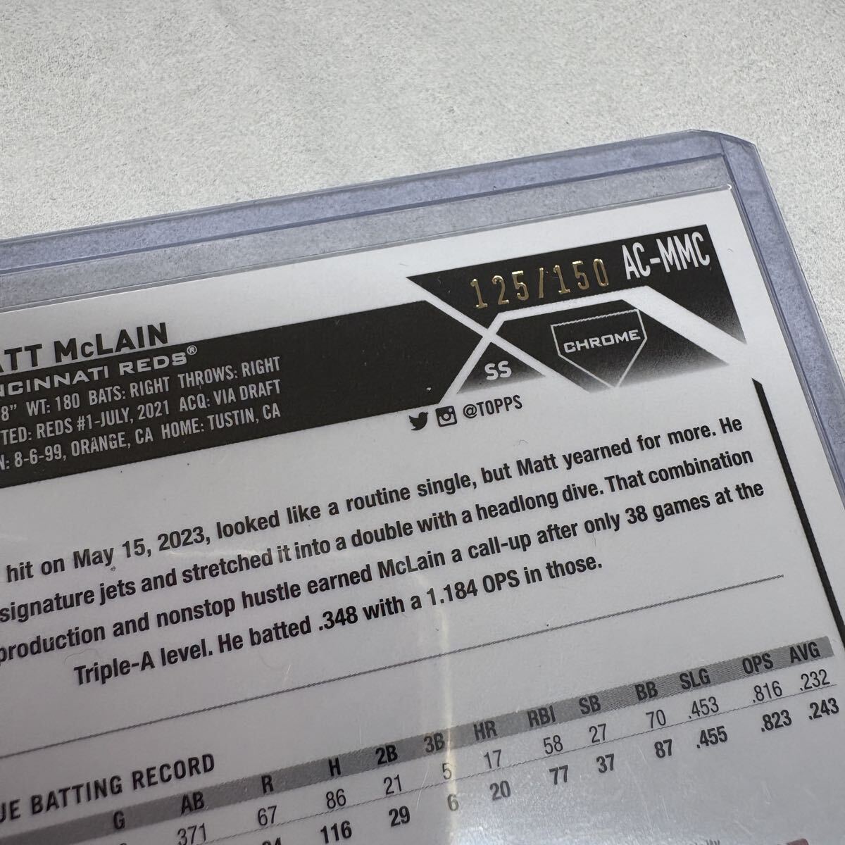 ④ topps トップス MLB シンシナティ・レッズ #9 #マット・マクレイン AC-MMC 125/150 RC 直筆サインカード