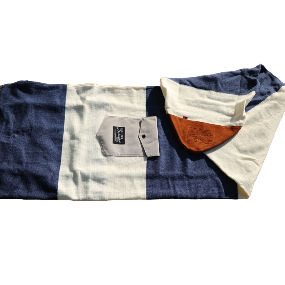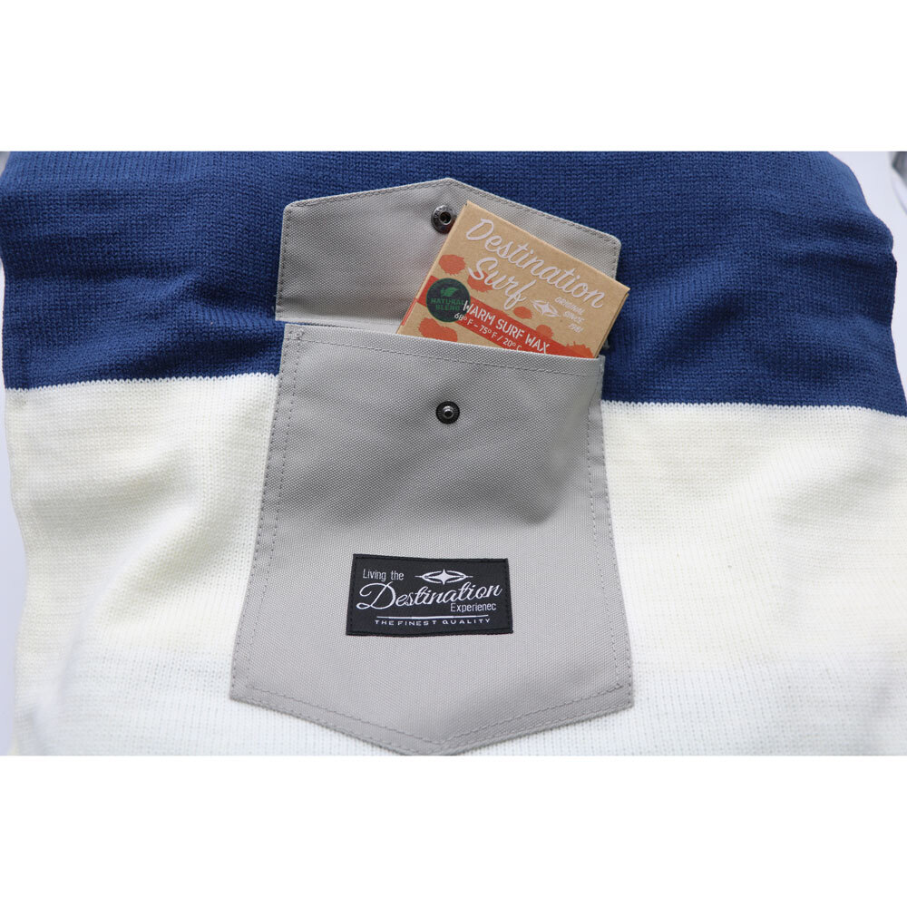 ノーズガードにレザーパーツをあしらい、染色がきれいに表現できるループニットを使ったハンドメイド・ボードソックス ポケットも機能性だけでなくワンポイントのデザイン