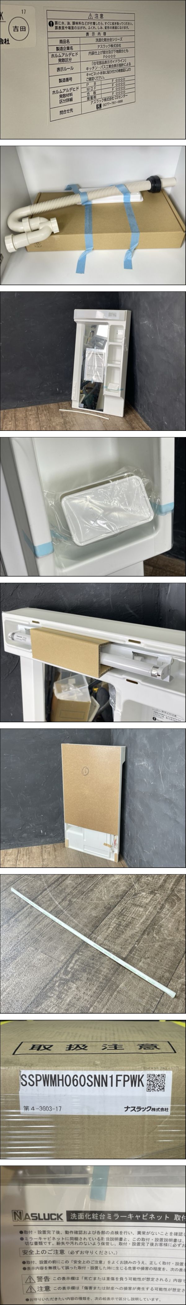 佐川220 200 未使用品 ナスラック 洗面化粧台 ミラーキャビネットセット SSPWMH060SNN1FPWK ホワイト 600mm幅 住宅設備 / 301442 在★2 |