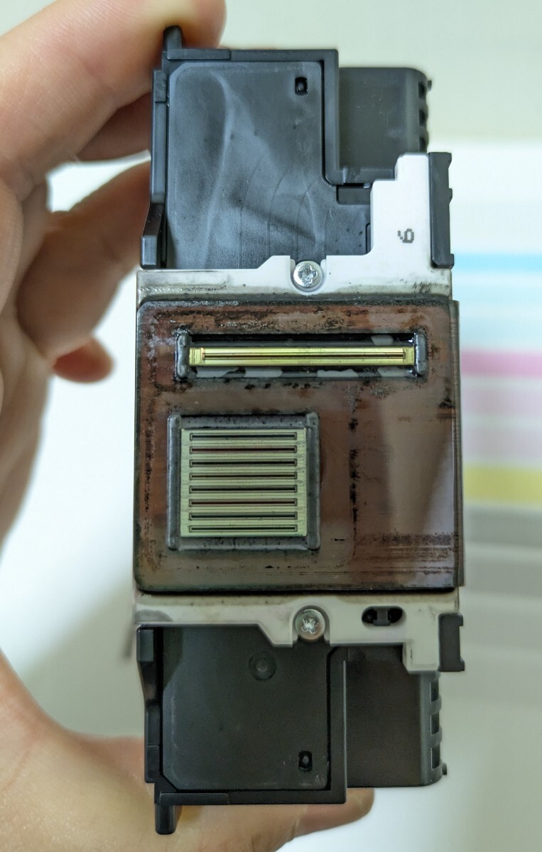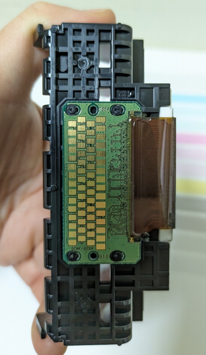 異常なプリンターに正常なプリントヘッドを取り付けされますとプリントヘッドの回線がショートする可能性があります。