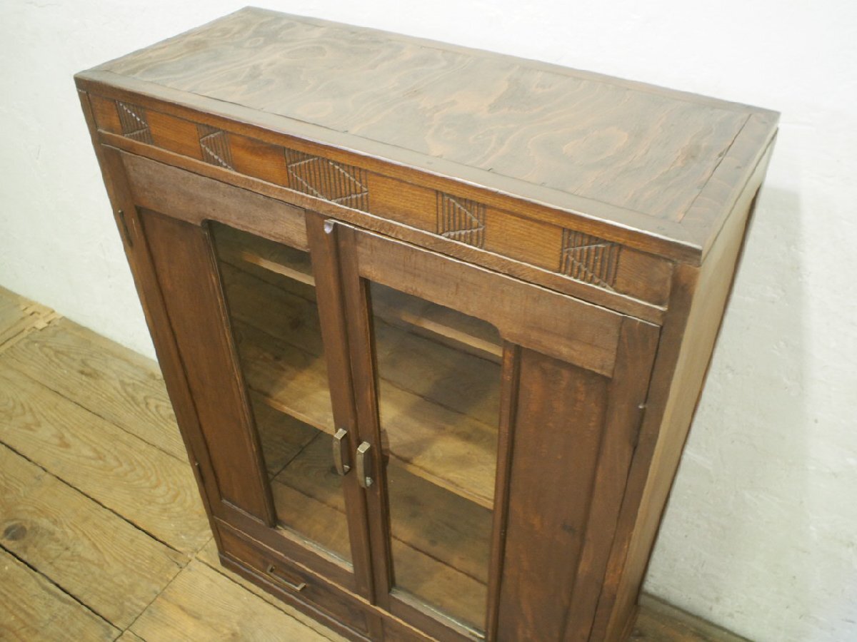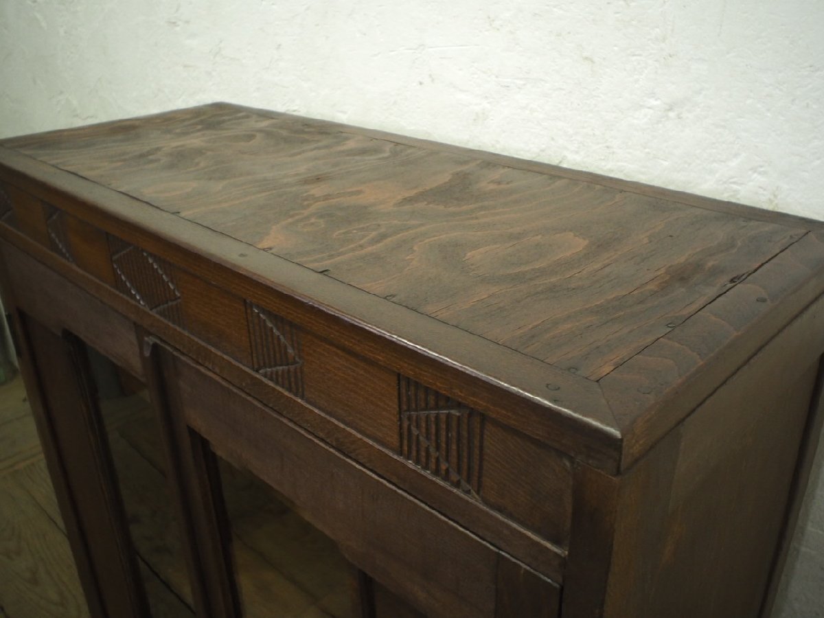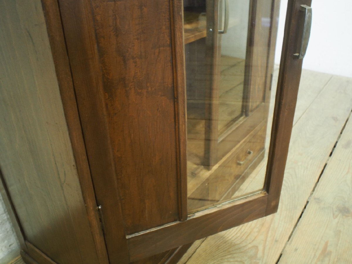 タ荷R0830◆H95cm×W72cm◆アンティーク◆ゆらゆらガラスの古い木製飾り棚◆食器棚 本棚 波ガラスケース キャビネット レトロM(ヤC)松