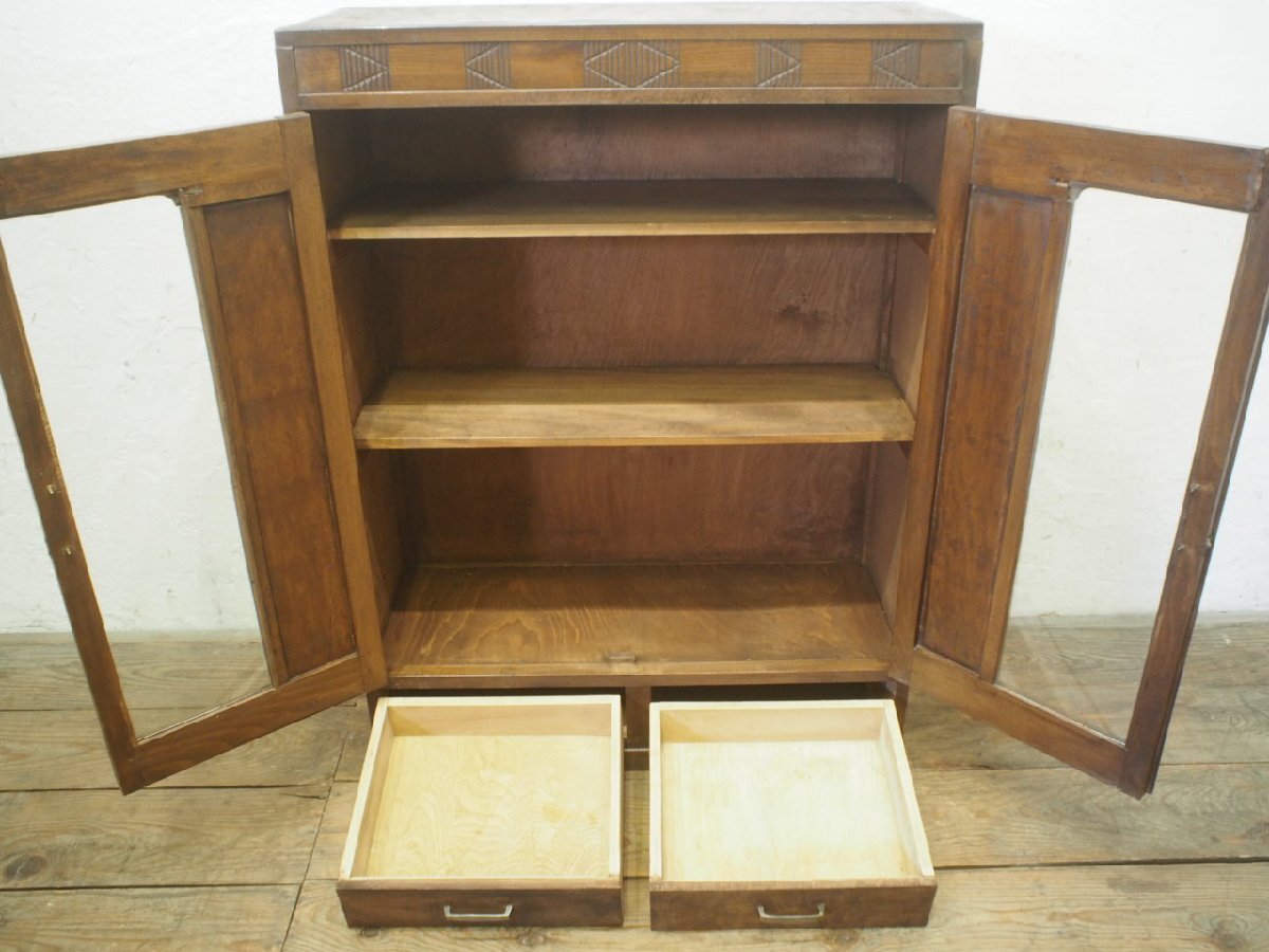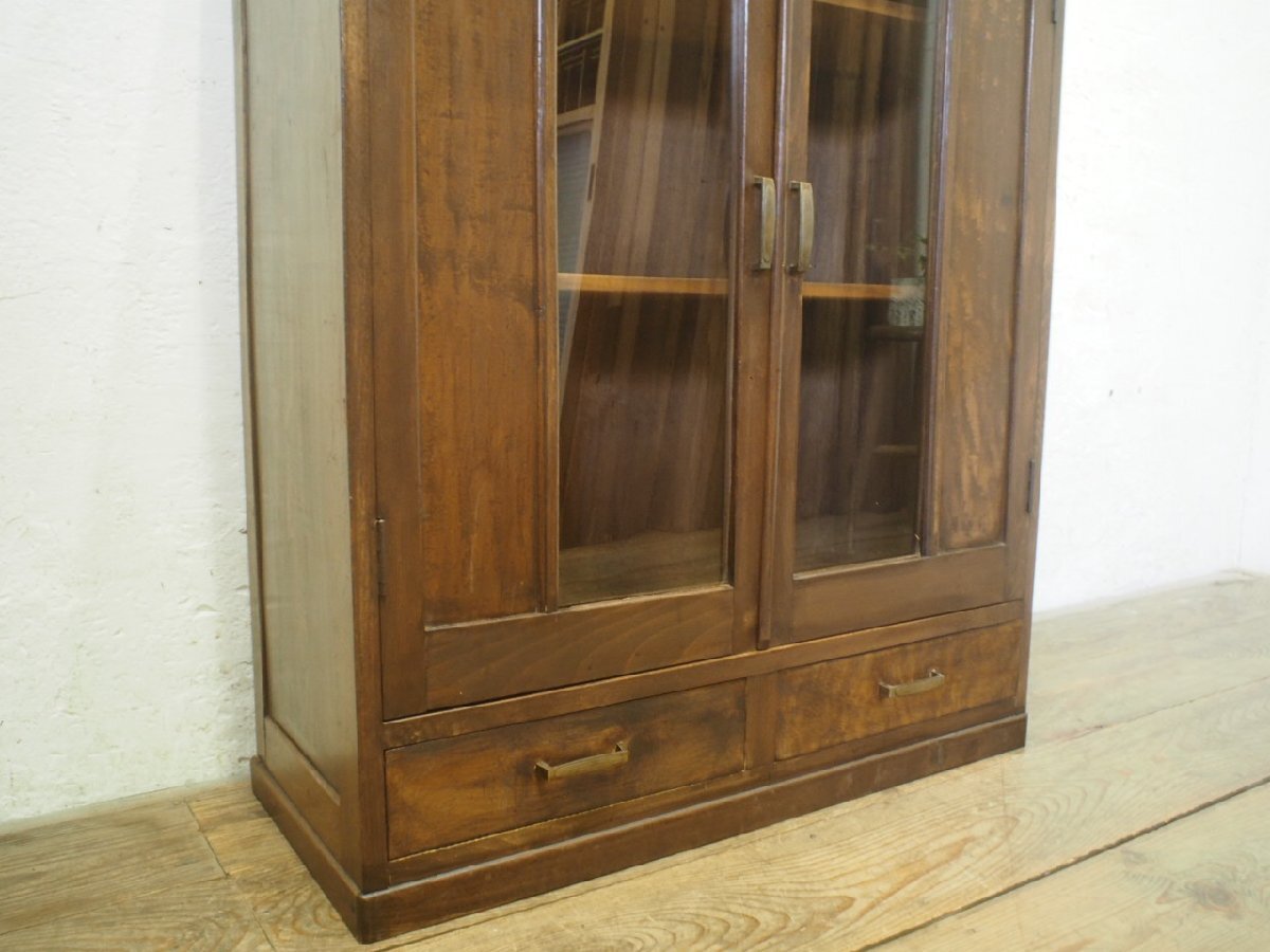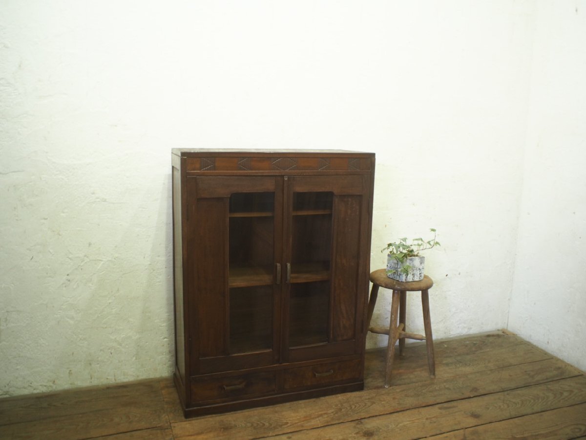 タ荷R0830◆H95cm×W72cm◆アンティーク◆ゆらゆらガラスの古い木製飾り棚◆食器棚 本棚 波ガラスケース キャビネット レトロM(ヤC)松
