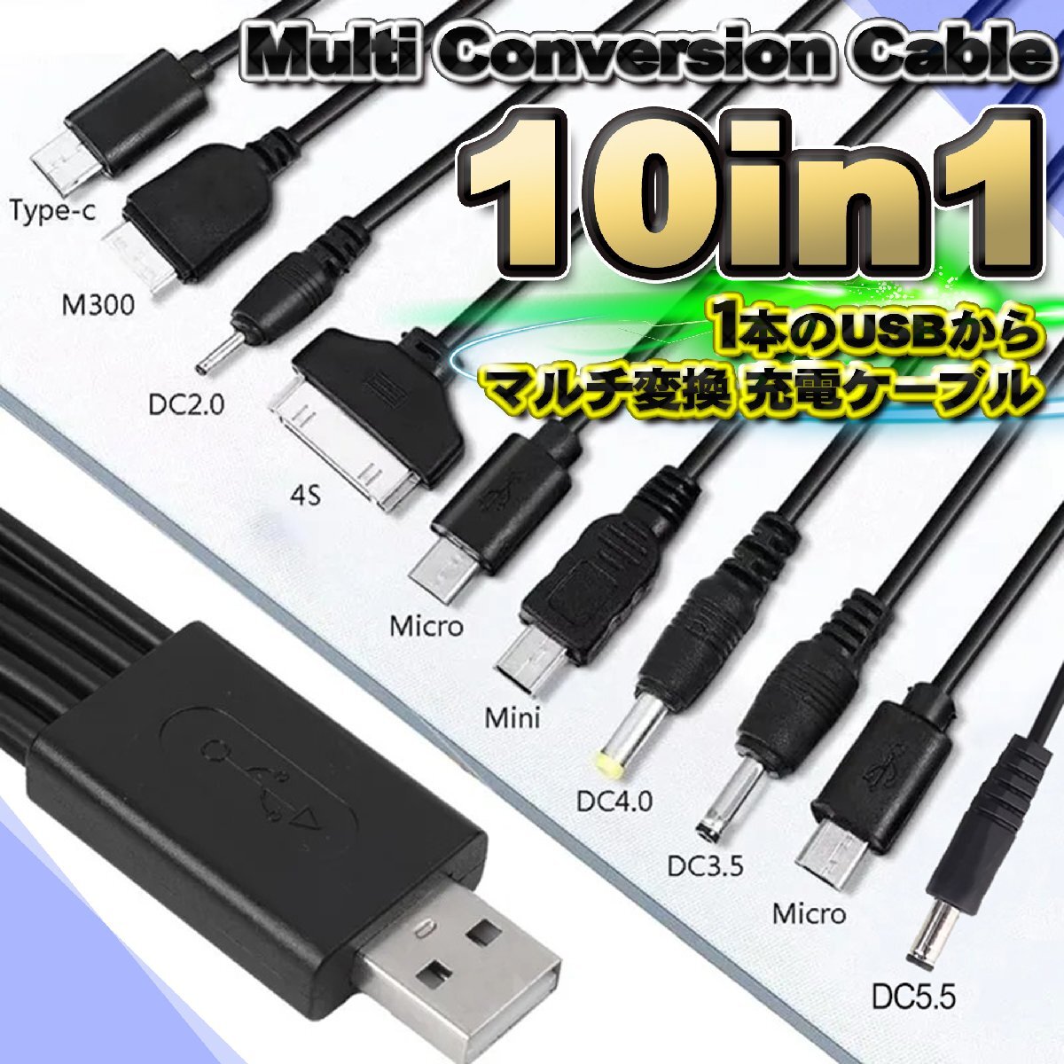 色んな機器の充電が出来る 10in1 充電 オールインワン 多機能 マルチ 変換ケーブル Type-c Micro USB Android対応