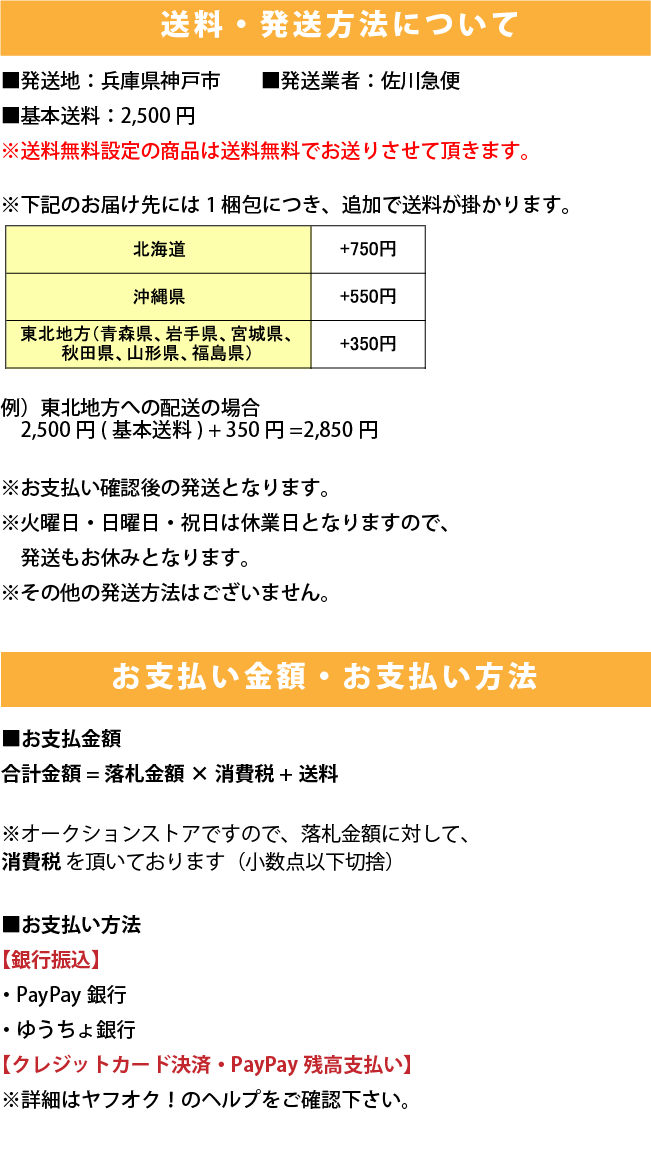 Ⅲ.一旦成功中标,您必须全额支付该拍品(成交价+消费税+银行转账费+日本邮费+代购费)。