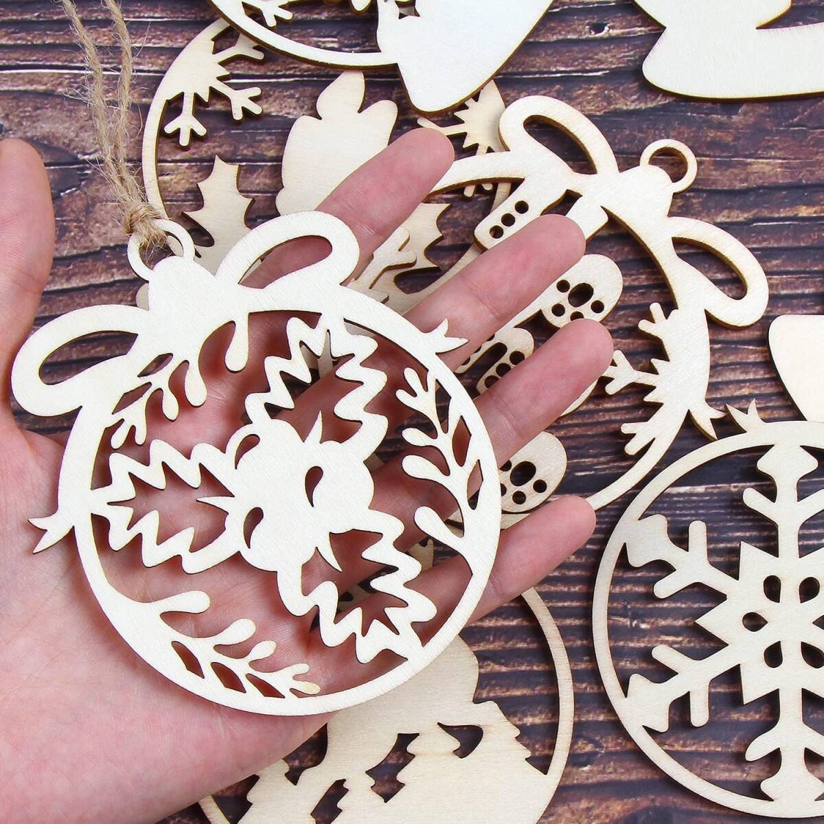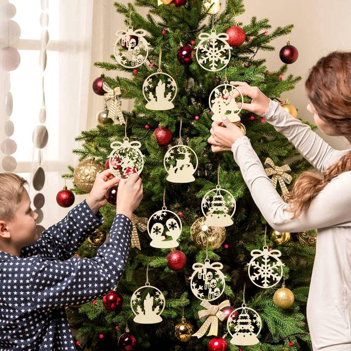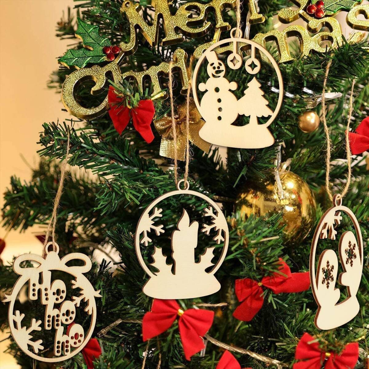クリスマス ツリー 飾り オーナメント 木製 24個・8種類 ドロップ 3D 立体 ストラップ 吊り 壁 掛け 玄関 インテリア