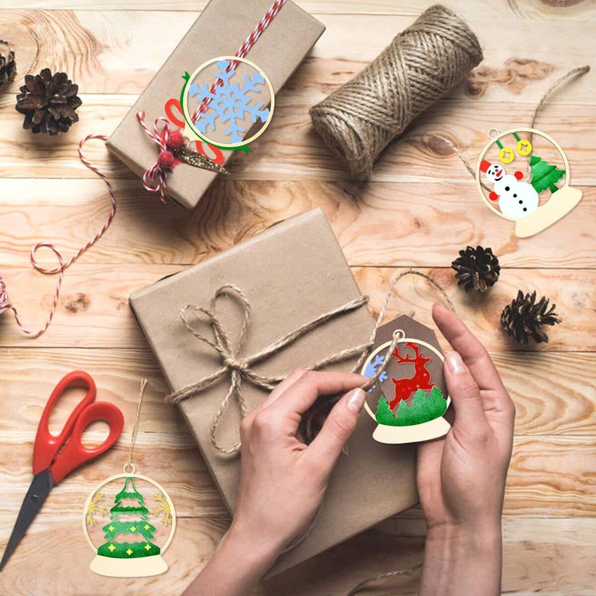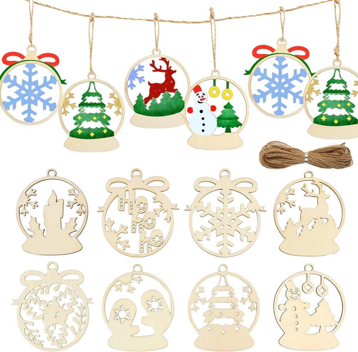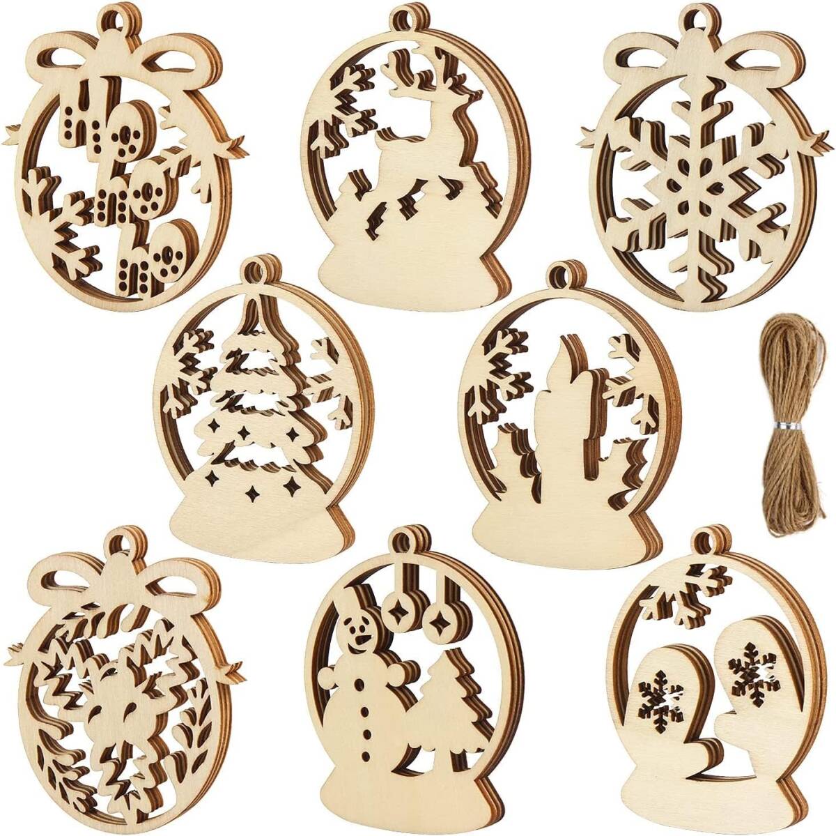 クリスマス ツリー 飾り オーナメント 木製 24個・8種類 ドロップ 3D 立体 ストラップ 吊り 壁 掛け 玄関 インテリア