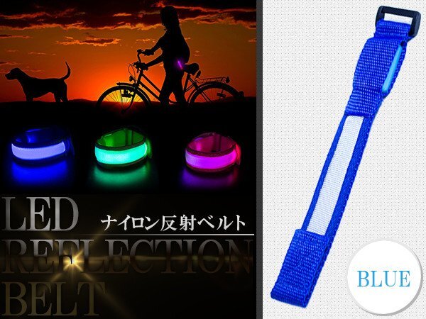 LED 反射ナイロンベルト ブルー/青 反射ベルトストラップ 散歩/ウォーキング 愛犬首輪 反射ベルト 夜間 安全対策 犬 猫 セーフティベルト