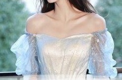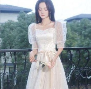 2wayパフスリ-ブロングドレスです。サテン地にシャンパンカラ-のオーガンジ-を2重重ね全体的にフェミニンでエレガントな雰囲気に。2wayの着こなしができます。オフショルダーの着こなし画像もアップいたしています。通常の着こなしでは、袖がパフスリ-ブになります。パーティやイベント、結婚式など、様々なシーンで、気品のある印象を与えてくれる一枚です。裏地有。背中網掛け。腰から下ファスナ-有。胸パット付。
