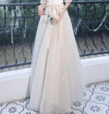 ■サイズ 9号(M) バスト:約84cm ウエスト:~約68cm着丈:約130cm(胸元トップス部分から裾部分まで) 袖丈:約30cm