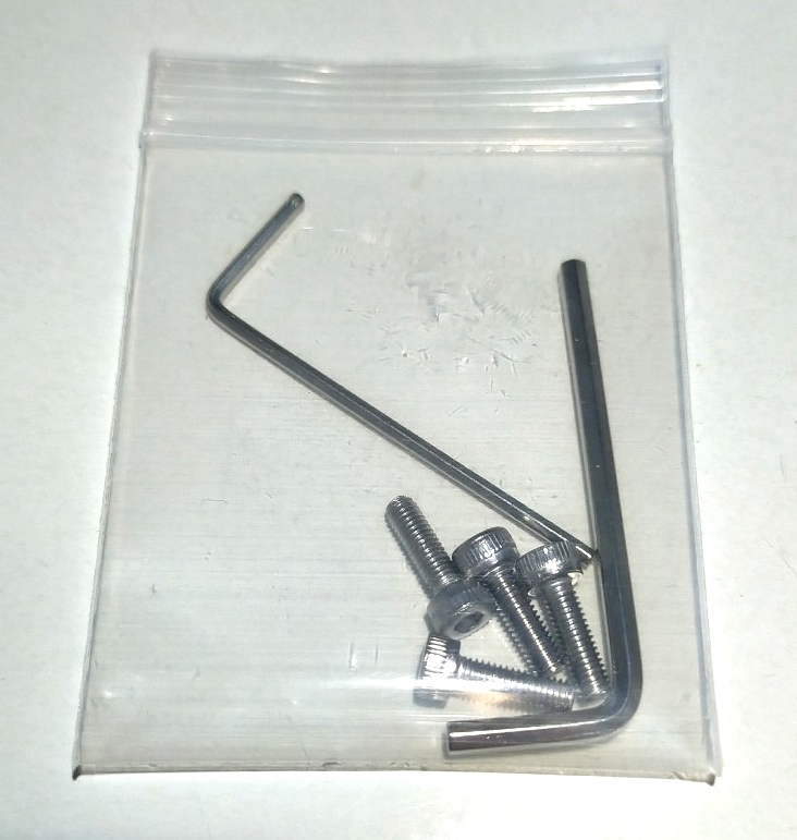 取り付け用のステンレス六角ビスx4、アーム固定用、ベース取付用の各六角レンチも合計2本付属します。