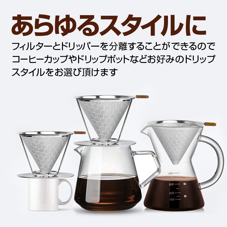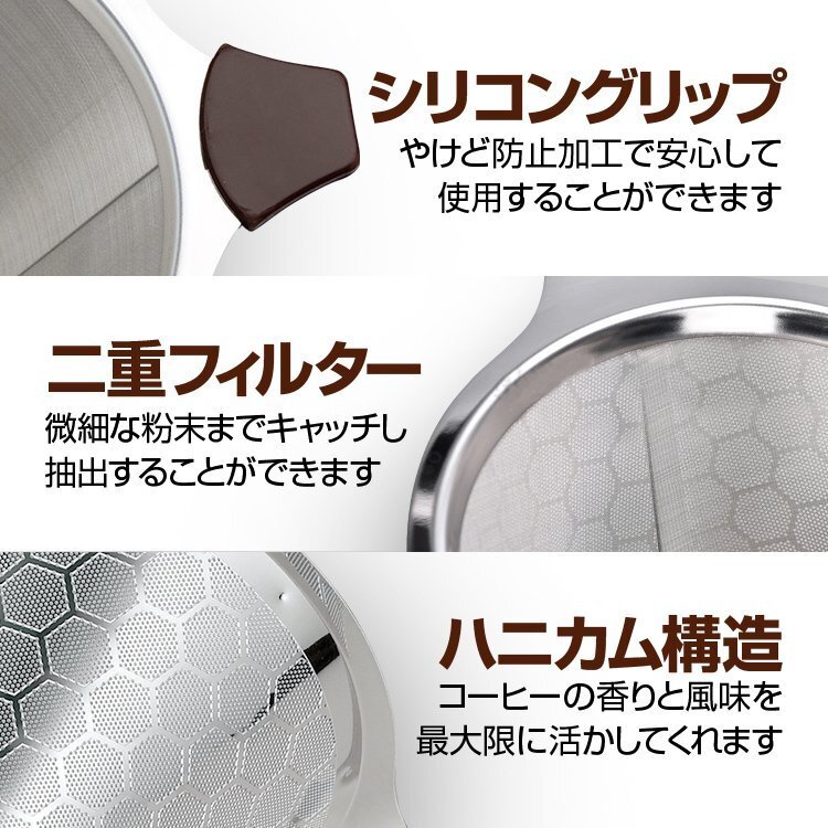 ◆ペーパーフィルター不要 コーヒードリッパー ステンレス コクのあるコーヒーを楽しめる ハニカム構造 耐熱 耐腐食 耐久 1-3杯用 二重メッシュ構造 お手入れ簡単 DPCF125STD