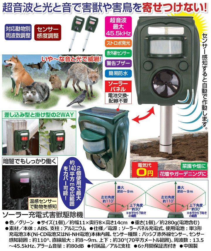 | 即決可@新品ソーラー充電式害獣駆除機 2個組 | ||||||||||||