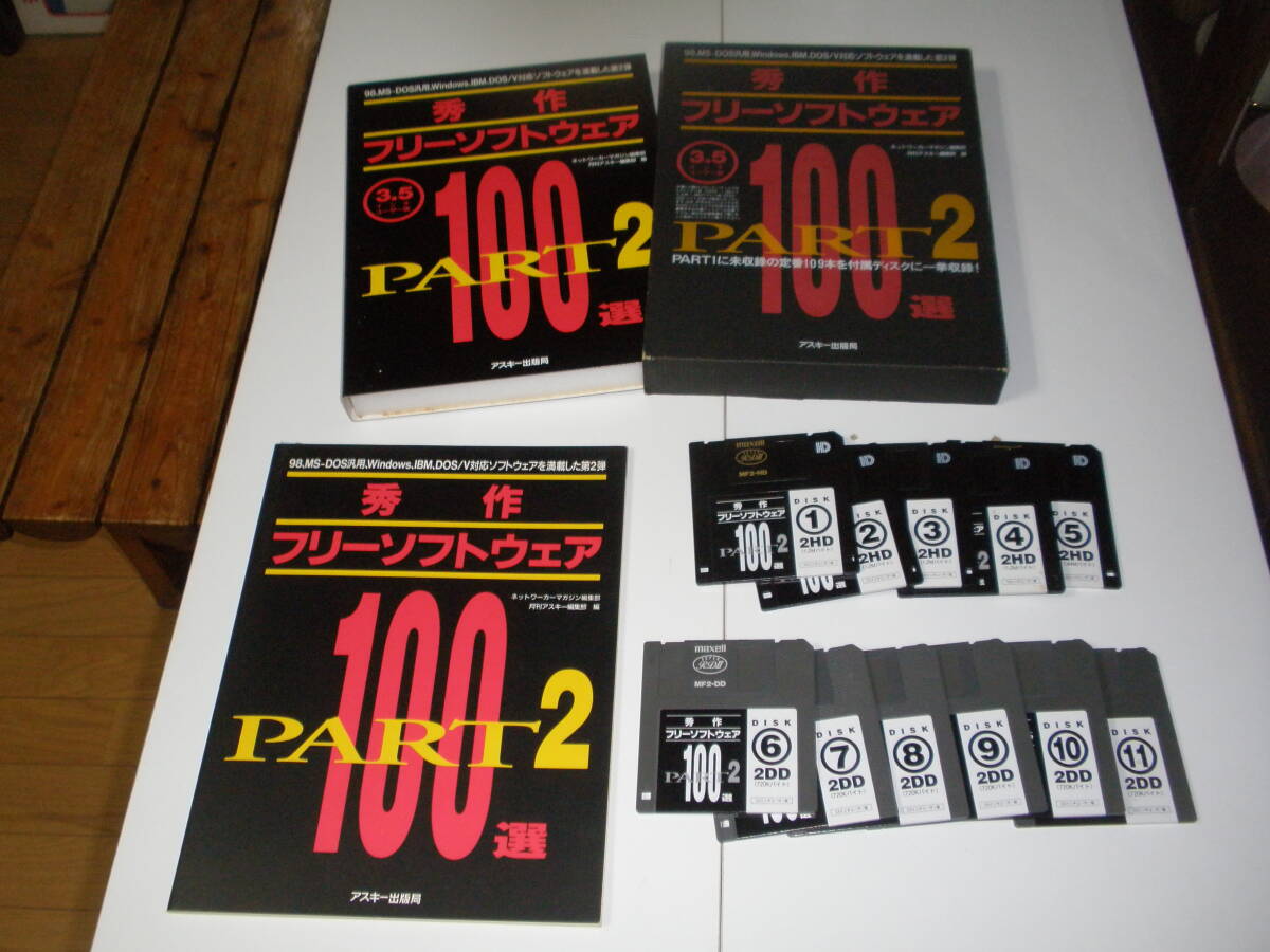 〇  「秀作フリーソフトウェア100選」(ソフトウェア103本付き)、「秀作フリーソフトウェア100選 PART2」(ソフトウェア109本付き)ともに、状態は良いと思います。マニュアルの冊子が付いています。