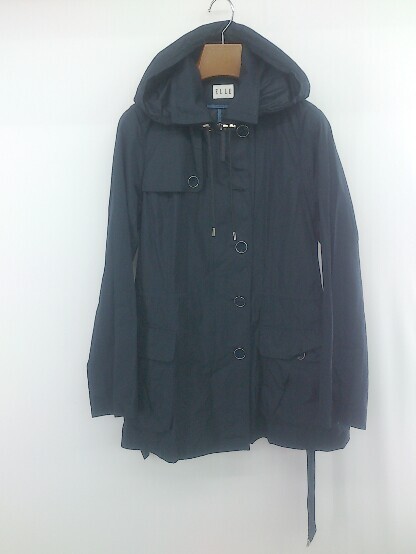 ◇ ◎ ELLE エル ベルト付 フーディ 長袖 ジップアップ コート サイズ38 ネイビー レディース P