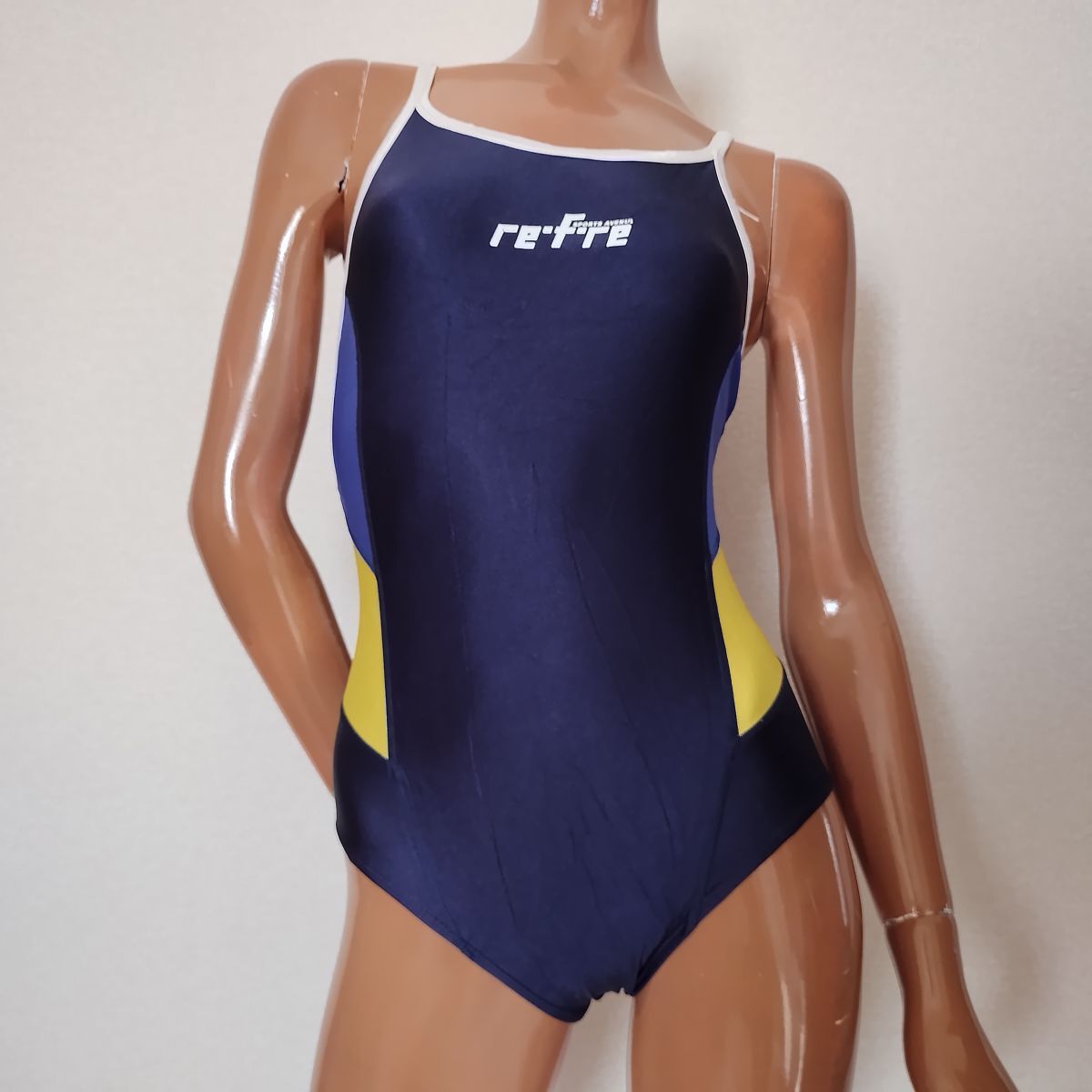 28*マーキュリー女子競泳水着(Mサイズ)★スポーツアベニューリフレスイミング専用★光沢濃紺ネイビー白ホワイトパイピング★