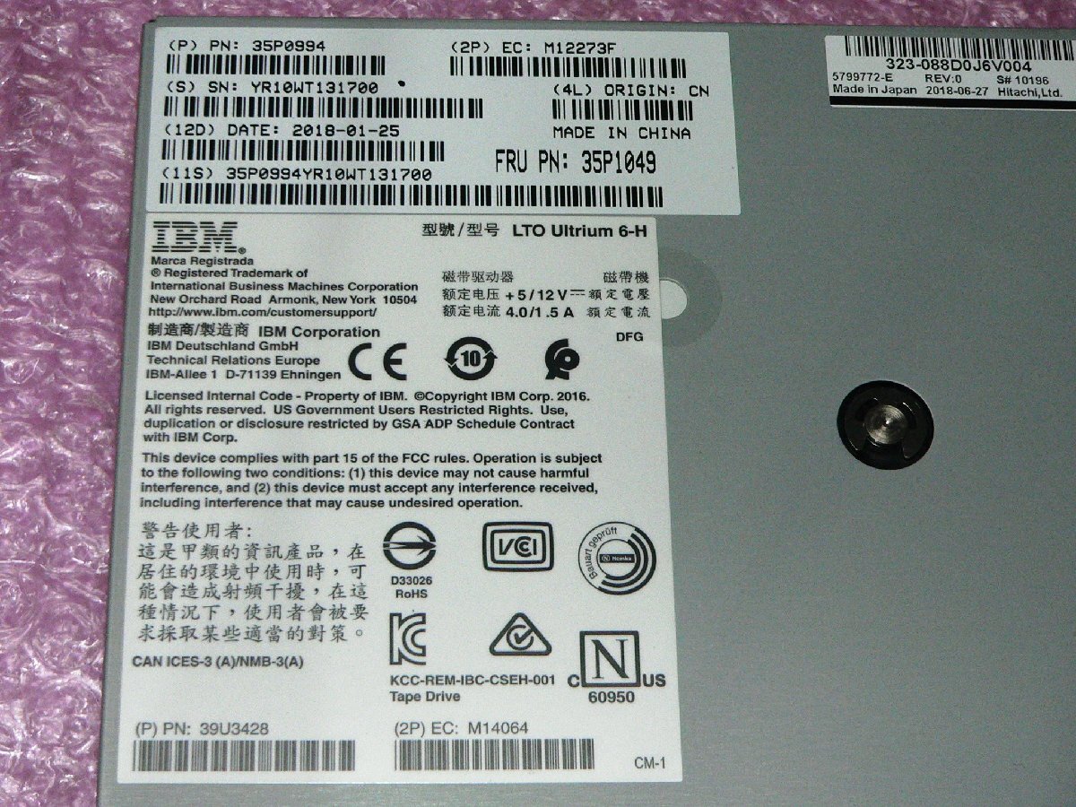 | 商品名 | IBM 35P1049 35P0994 LTO6 SAS 内蔵型テープドライブ |