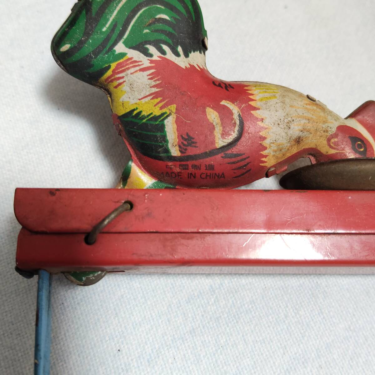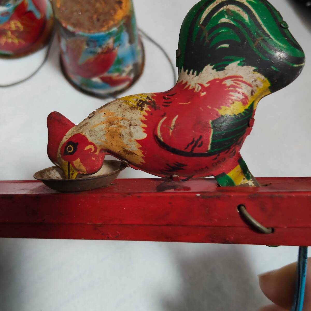 ・二羽の鶏が下の青いパーツを握ると動いてお皿をついばみます(約15×16cm)。