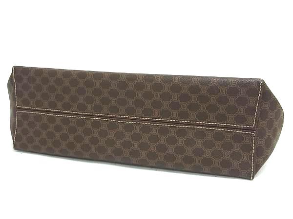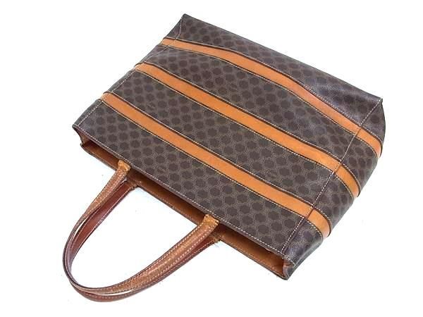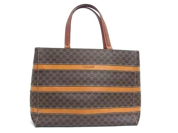 1円 CELINE セリーヌ ヴィンテージ マカダム柄 PVC×レザー ボーダー トートバッグ ハンドバッグ レディース ブラウン系 BN6714