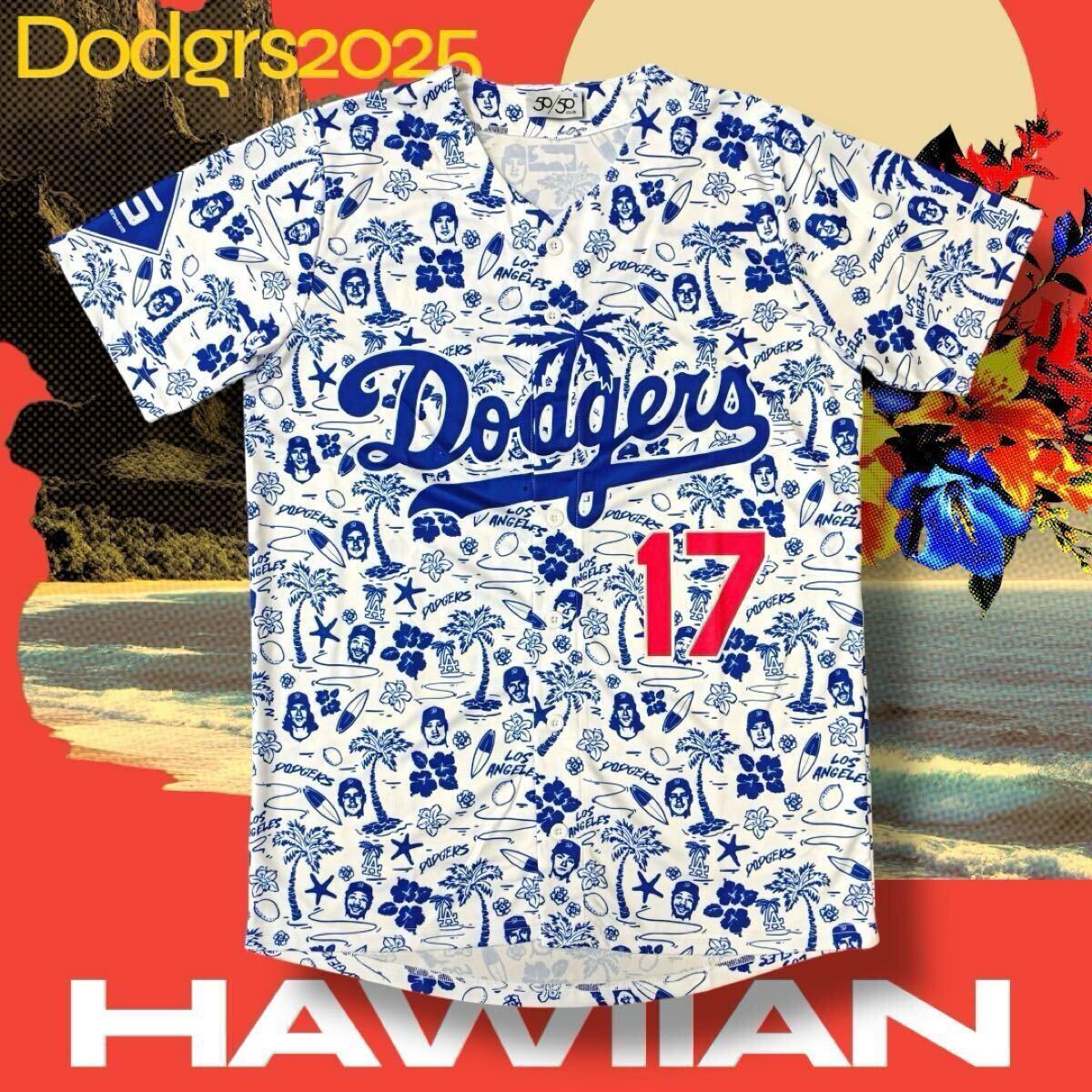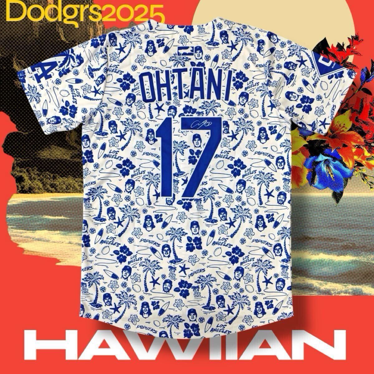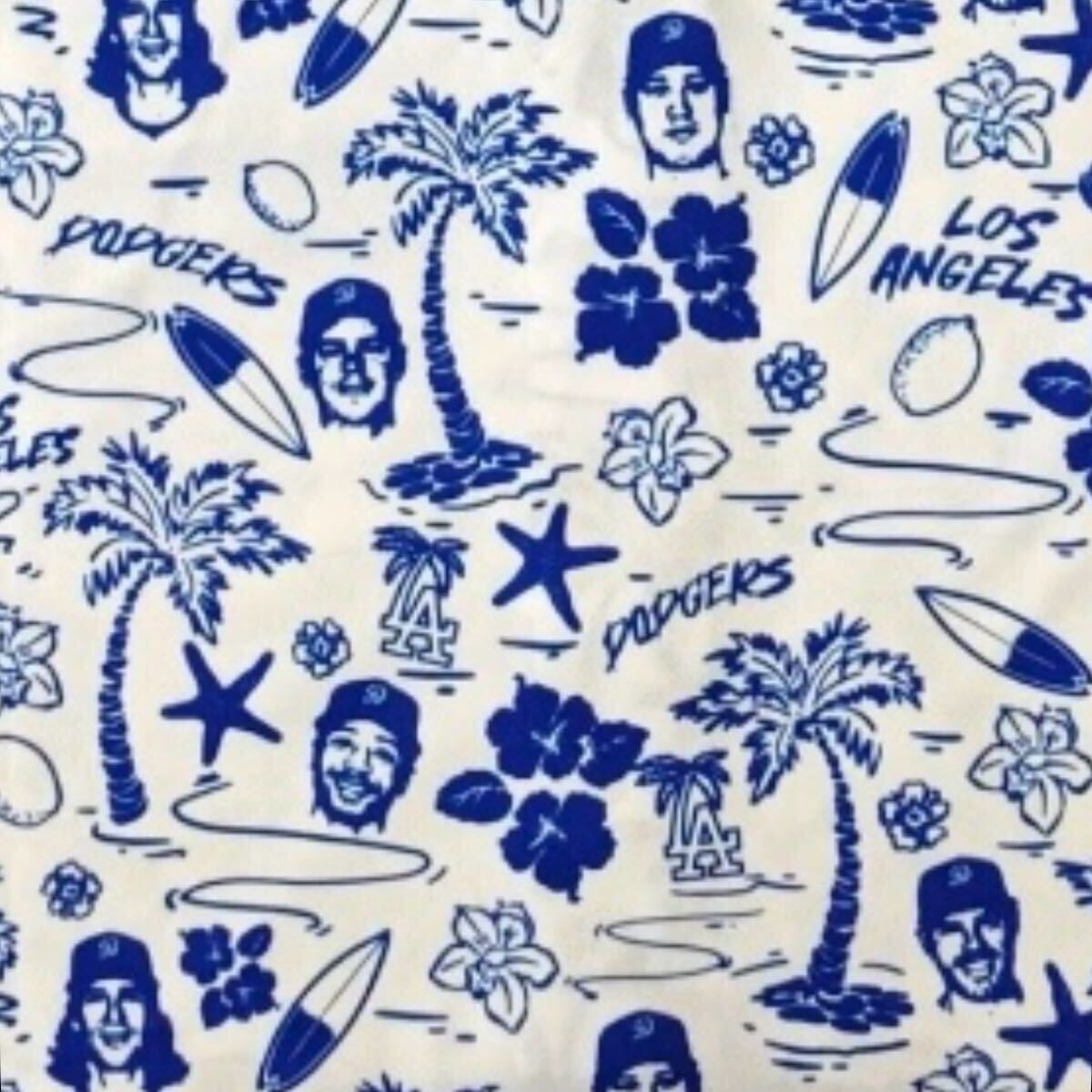 上記の選手たちの顔が至るところに散りばめられたデザインのハワイアンシャツです。