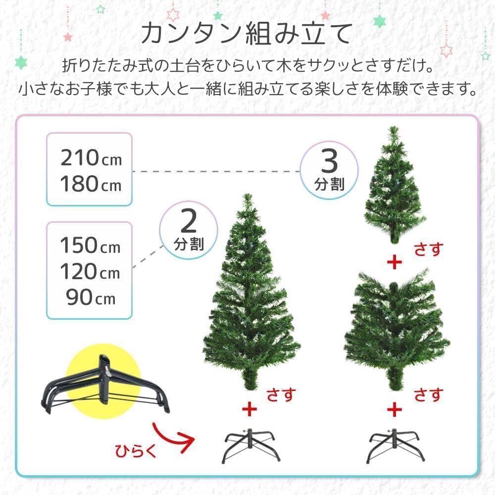 150cm レインボーファイバー色 キラキラ クリスマスツリー 光る ファイバーツリー LED内蔵 自動カラーチェンジ 省エネ 簡単組立