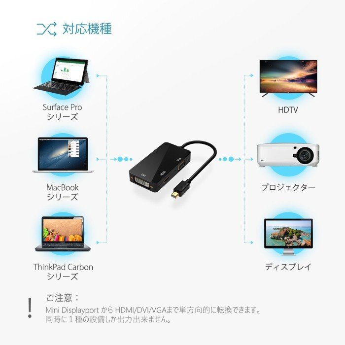 | Mini Displayport to DVI/VGA/HDMI 変換アダプター ブラック |