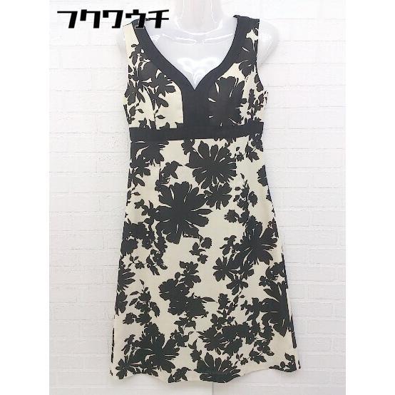 ◇ any FAM エニィファム 総柄 バックジップ ノースリーブ 膝下丈 ワンピース サイズ2 アイボリー系 ブラック レディース
