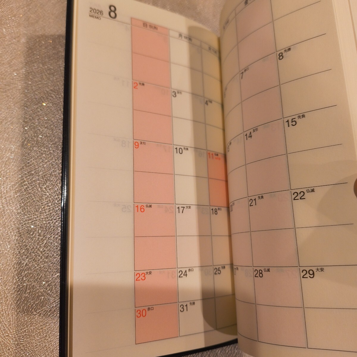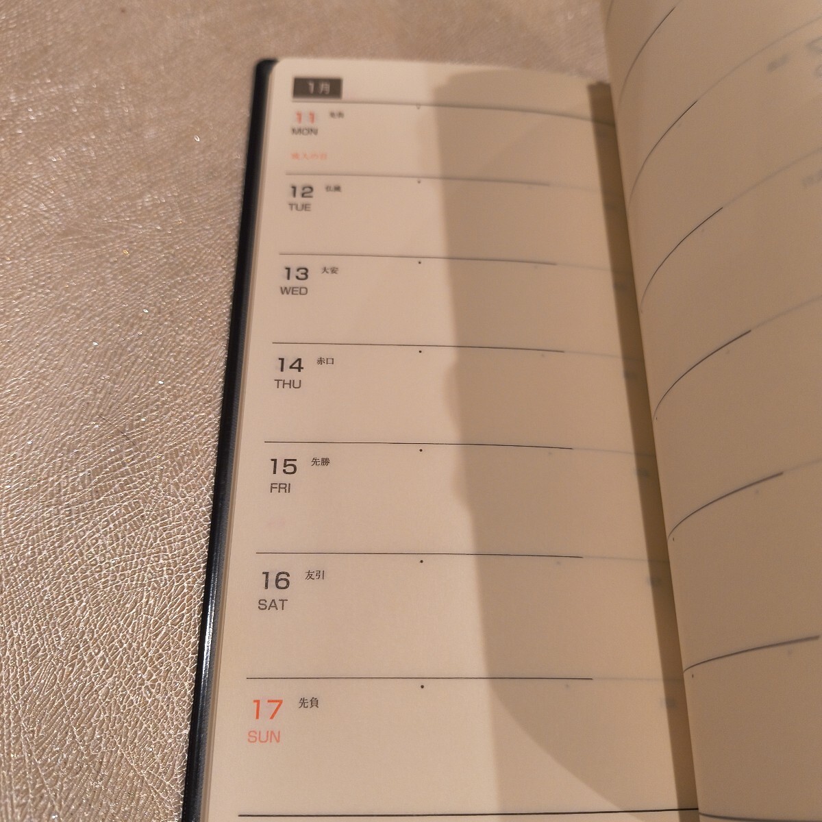 写真の通り、月次、週次の記入欄があり、最後にメモ部分と住所録がついています