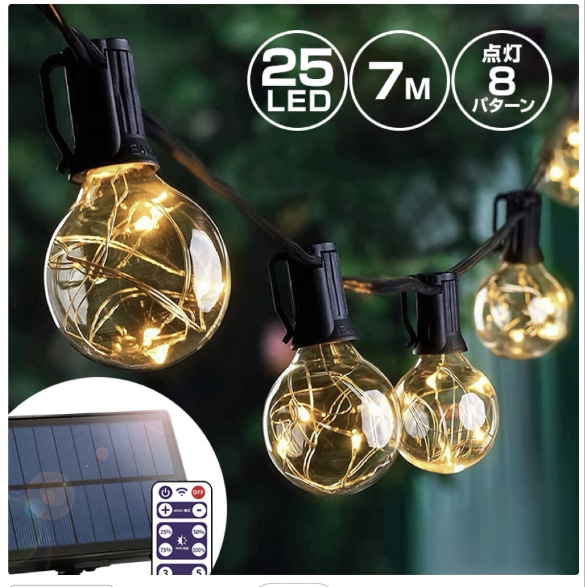 ソーラー イルミネーション ガーデンライト LED25球 長さ7m 電球色 ストレート 屋外用 防水 明るい 充電式 ストリングライト アンティーク レトロ おしゃれ かわいい