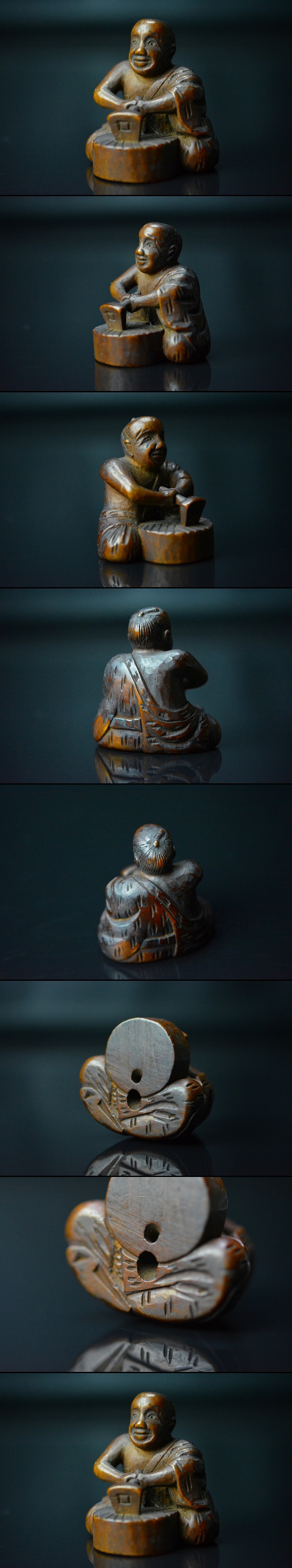 時代;『人物木彫根付』無垢彫刻 提物印籠緒締玉煙草入木彫彫刻 D228-17 |