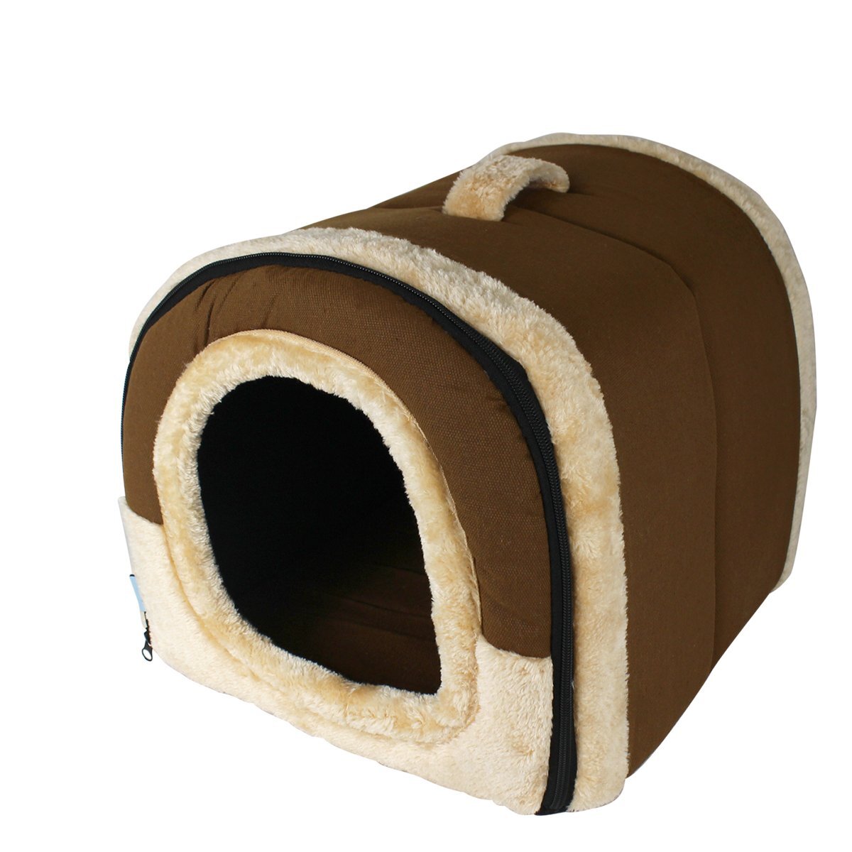 2way仕様のドーム型ペットハウス♪ 折りたたみ式 ペットベッド Mサイズ ブラウン 茶色 犬猫用 隠れ家 防寒対策 ソファー クッション