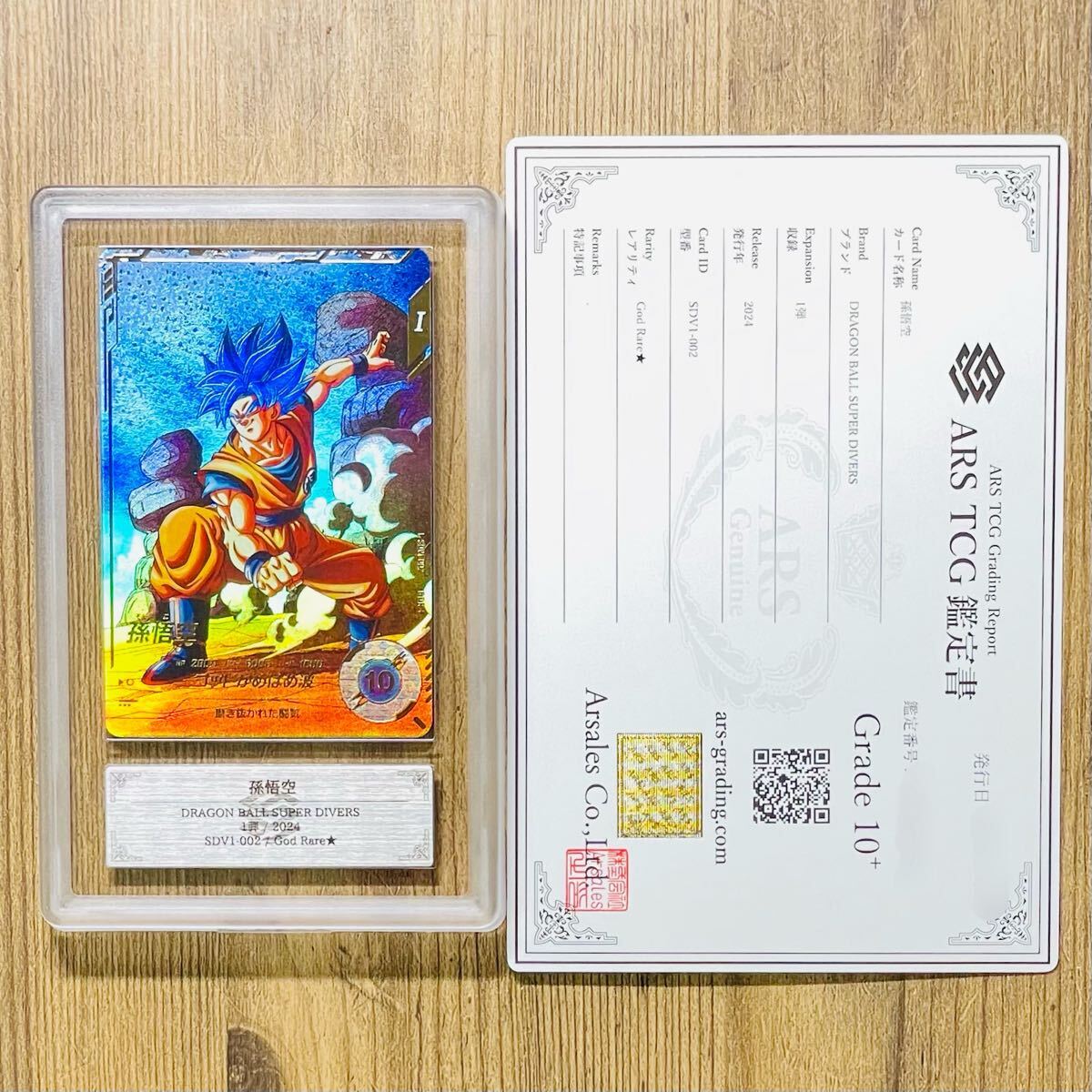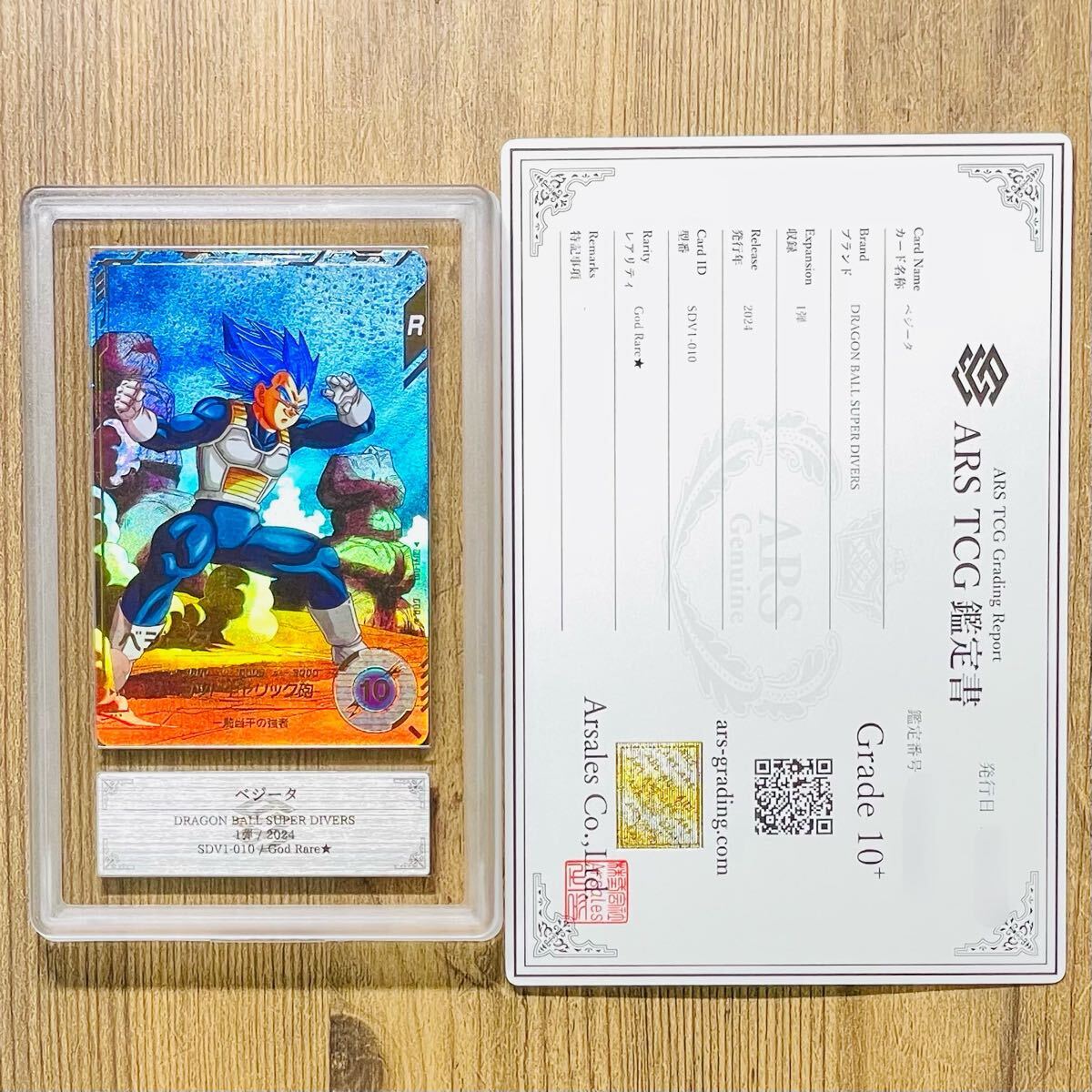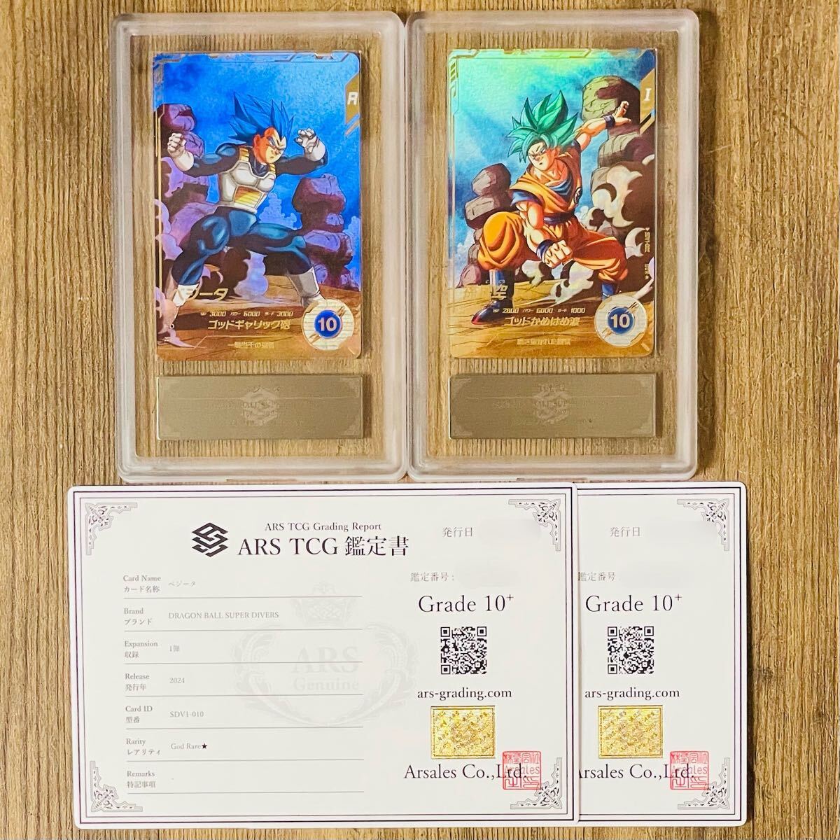 ARS鑑定様に鑑定して頂き最高評価のGrade10+を頂いた商品です。① ベジータ SDV1-010 God Rare★ DRAGON BALL SUPER DIVERS 出品時点で世界に1枚のグレード ② 孫悟空 SDV1-002 God Rare★ DRAGON BALL SUPER DIVERS 出品時点で世界に5枚のグレード の2枚セットとなります。