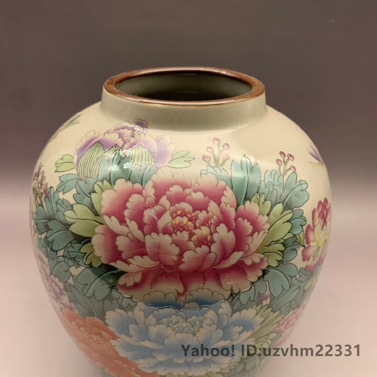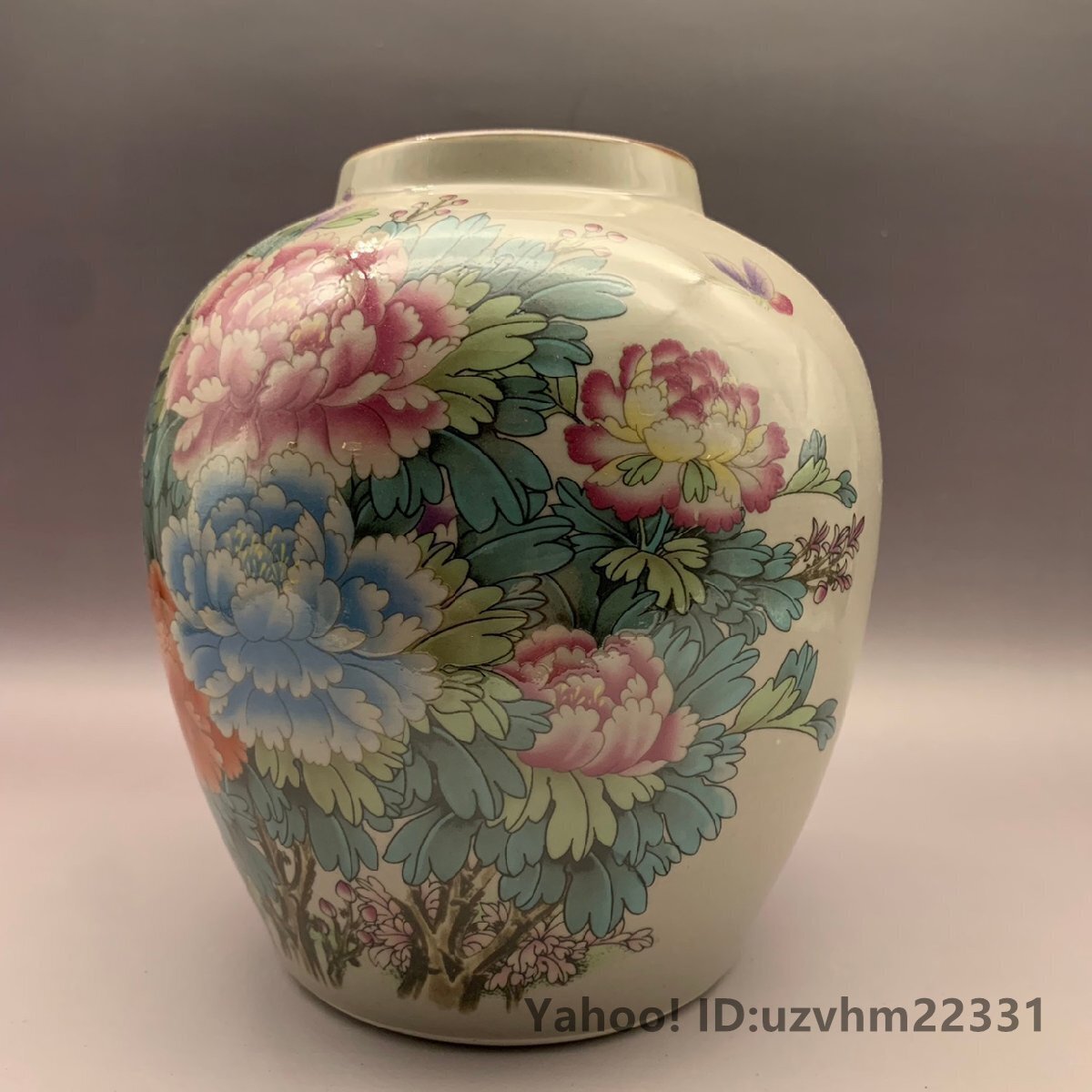高品質! 花瓶 粉彩 花柄 ぼたん 観賞 装飾 賞物 美術 景徳鎮 中国陶磁 収蔵