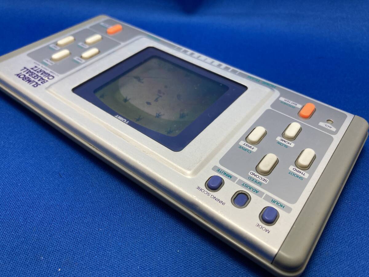 | トミーのLSIゲーム「スリムボーイ ベースボールクォーツ」です。 清掃済み・動作品です。1983年頃の発売。 動作状況は下記GIF画像をご覧ください。 [プレイ時のGIF画像1枚有] 約20秒間繰り返し表示 表示されない場合は、コチラをクリックしても確認頂けるようにしています 箱・説明書はありません。本体のみとなります。 画像では伝わりませんが、音も現在正常に出ています。ボタン動作異常なし。 通常通り遊べます。 ボタン電池:LR44×2必要(電池はお付けしていません) 電池蓋あり、正規品です 時計機能の付いた野球ゲームです。 少し大ぶりで、高級感のあるデザインが特徴です。 どうぞよろしくお願いいたします。 |