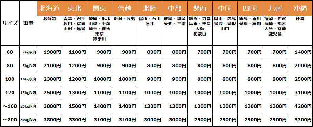 | 纸箱大小(CM) | 打包费(日元) |